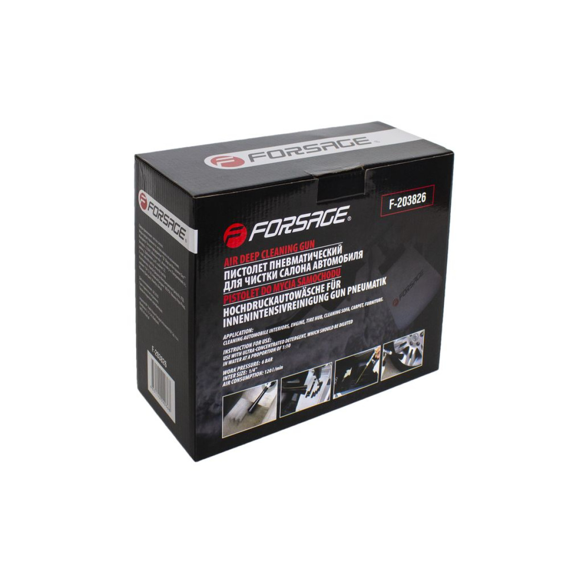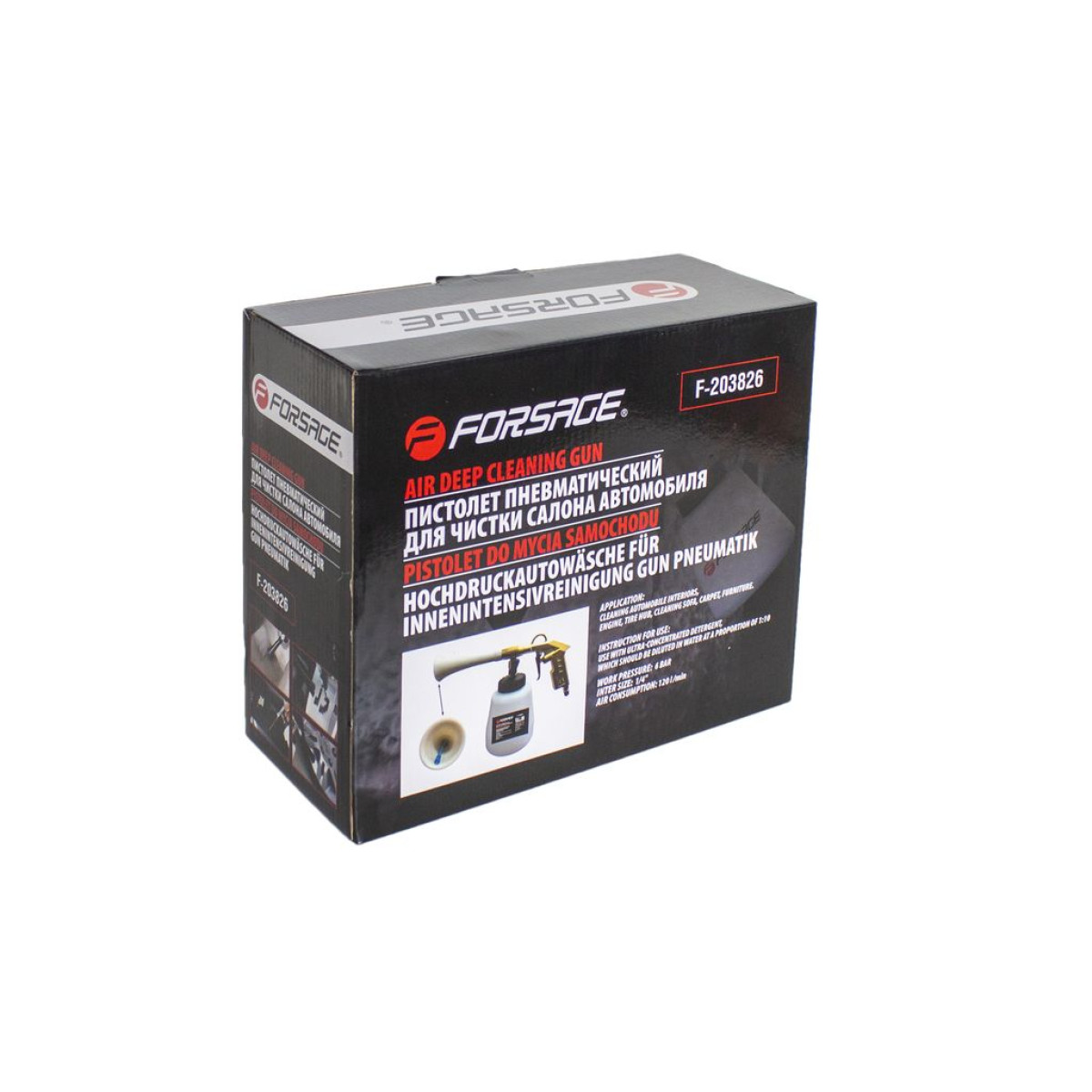 Пневматический пистолет Tornado F-203826 предназначен для глубокой очистки салона автомобиля с использованием эффекта "торнадо". Обеспечивает эффективное удаление пыли, грязи и сложных загрязнений даже в труднодоступных местах.