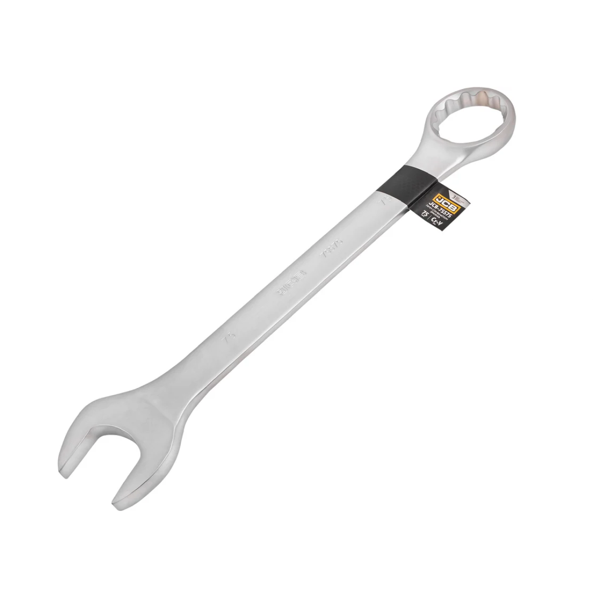 Рожково-накидной ключ JCB Tools - это надежный и универсальный ручной инструмент для монтажа и демонтажа болтов, гаек и других резьбовых соединений. Предназначен для регулярного использования в мастерских, на СТО и в бытовых условиях. Изготовлен из штампованной хромованадиевой стали, что обеспечивает прочность и долгий срок службы.