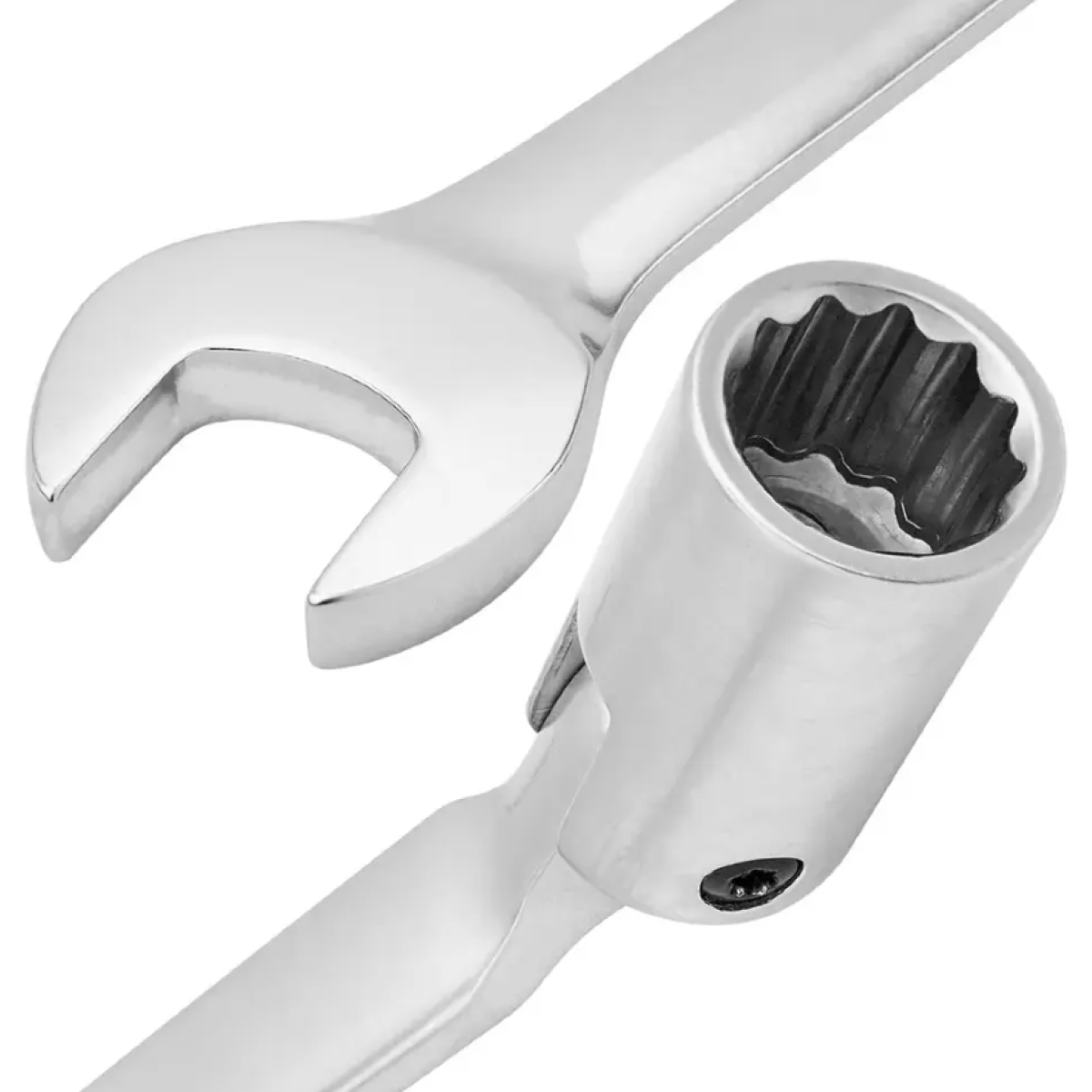 Шарнирное соединение позволяет изменять угол наклона до 180°, что облегчает работу в труднодоступных местах и обеспечивает доступ к крепежу под разными углами.