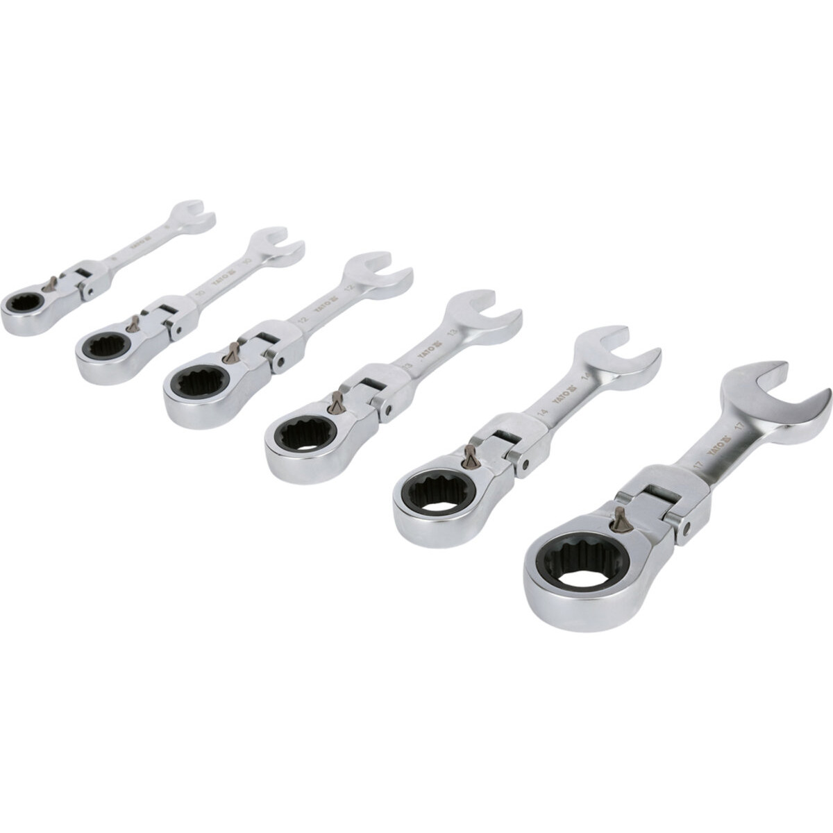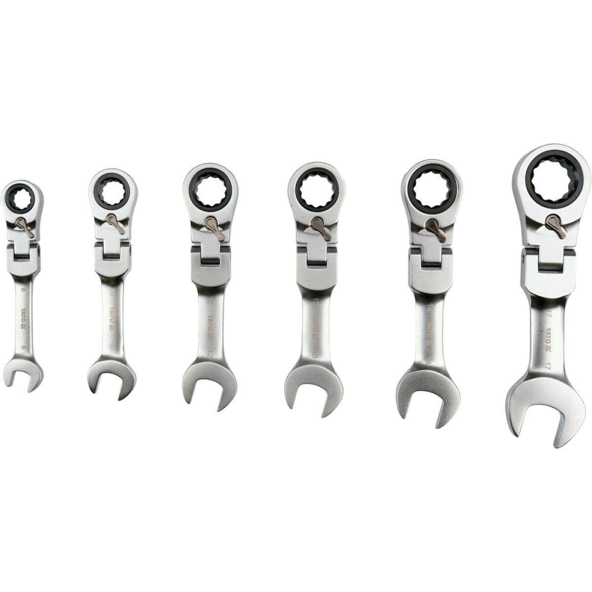 Набор ключей комбинированных коротких реверсивных с трещоткой на шарнире 8-17 мм, 6 шт YATO YT-16977 - YT-16977