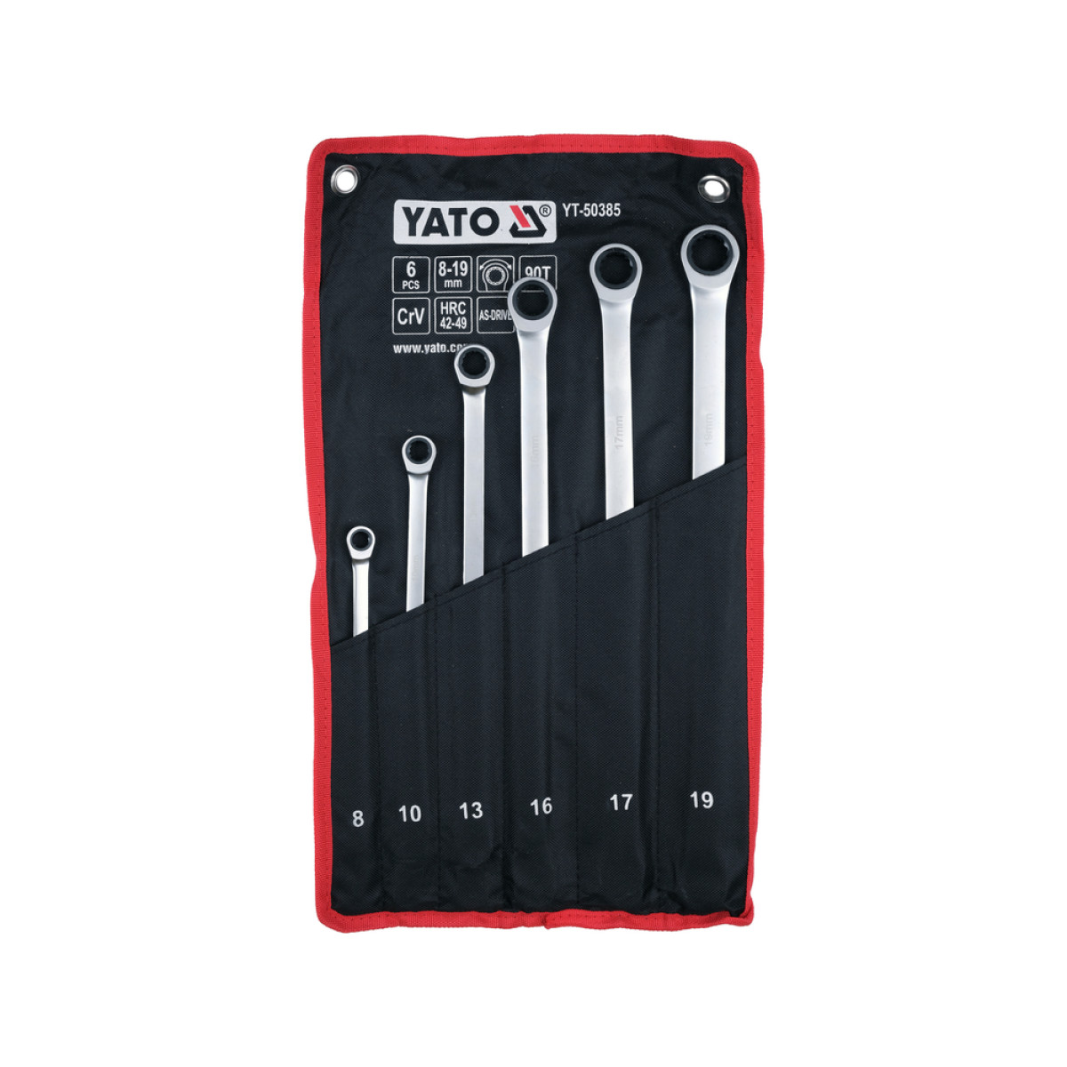 Набор ключей накидных удлиненных с трещоткой 8-19 мм, 6 шт YATO YT-50385 - YT-50385