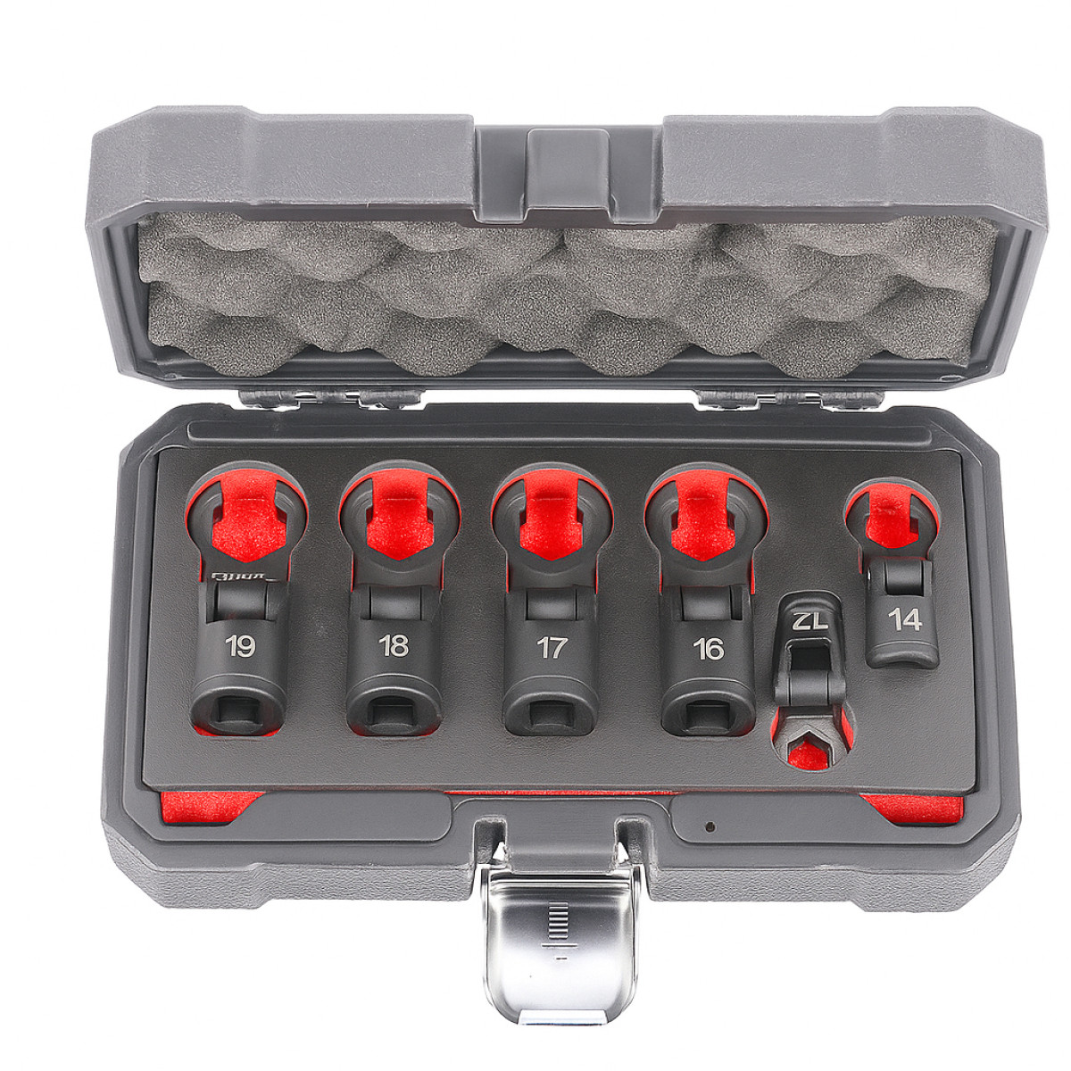 набор разрезных ключей quatros qs50634, шарнирные ключи 3/8, ключи для топливных трубок, рожковые ключи quatros, набор гаечных ключей 12–19 мм, разрезные головки, инструменты quatros, набор для автосервиса, форс авто quatros