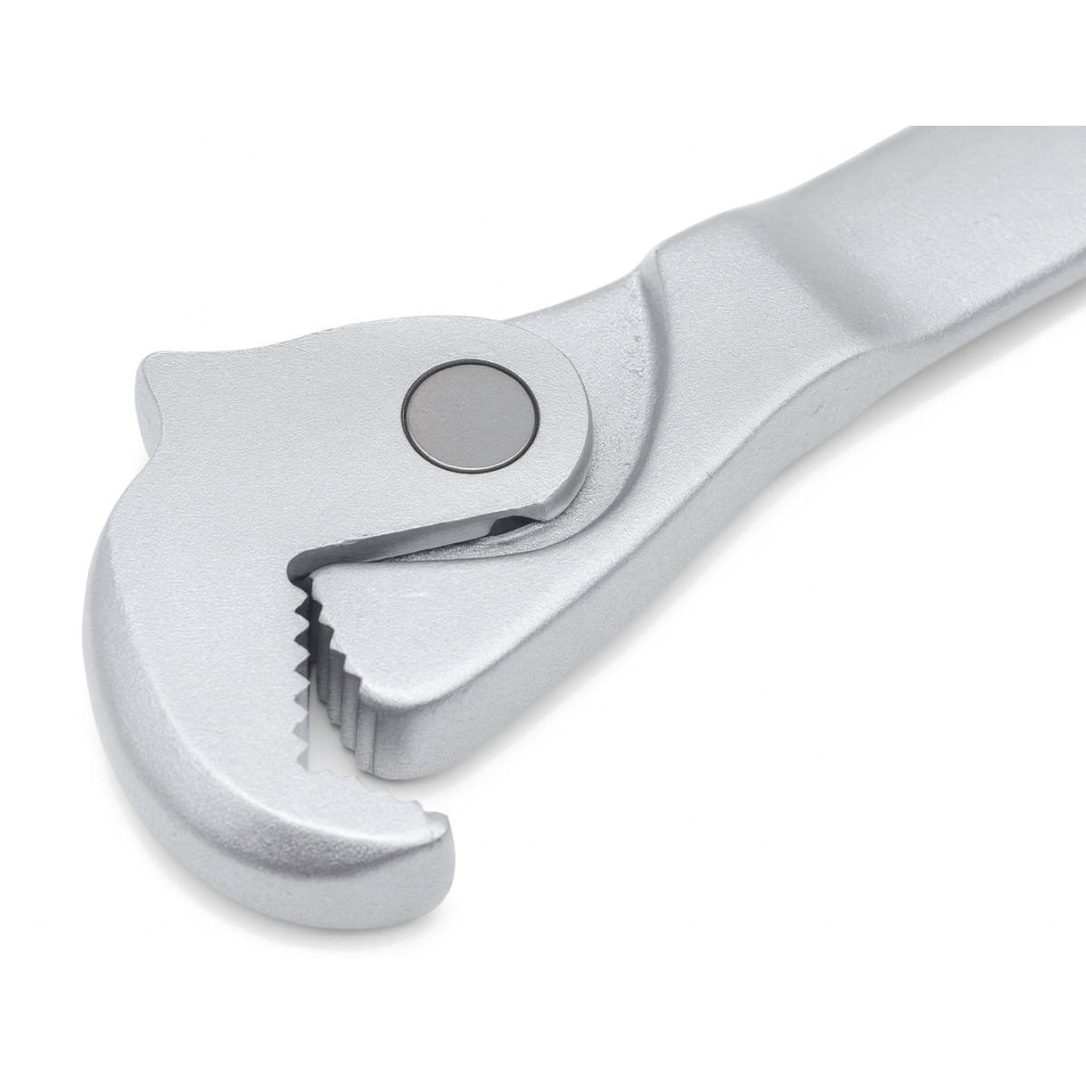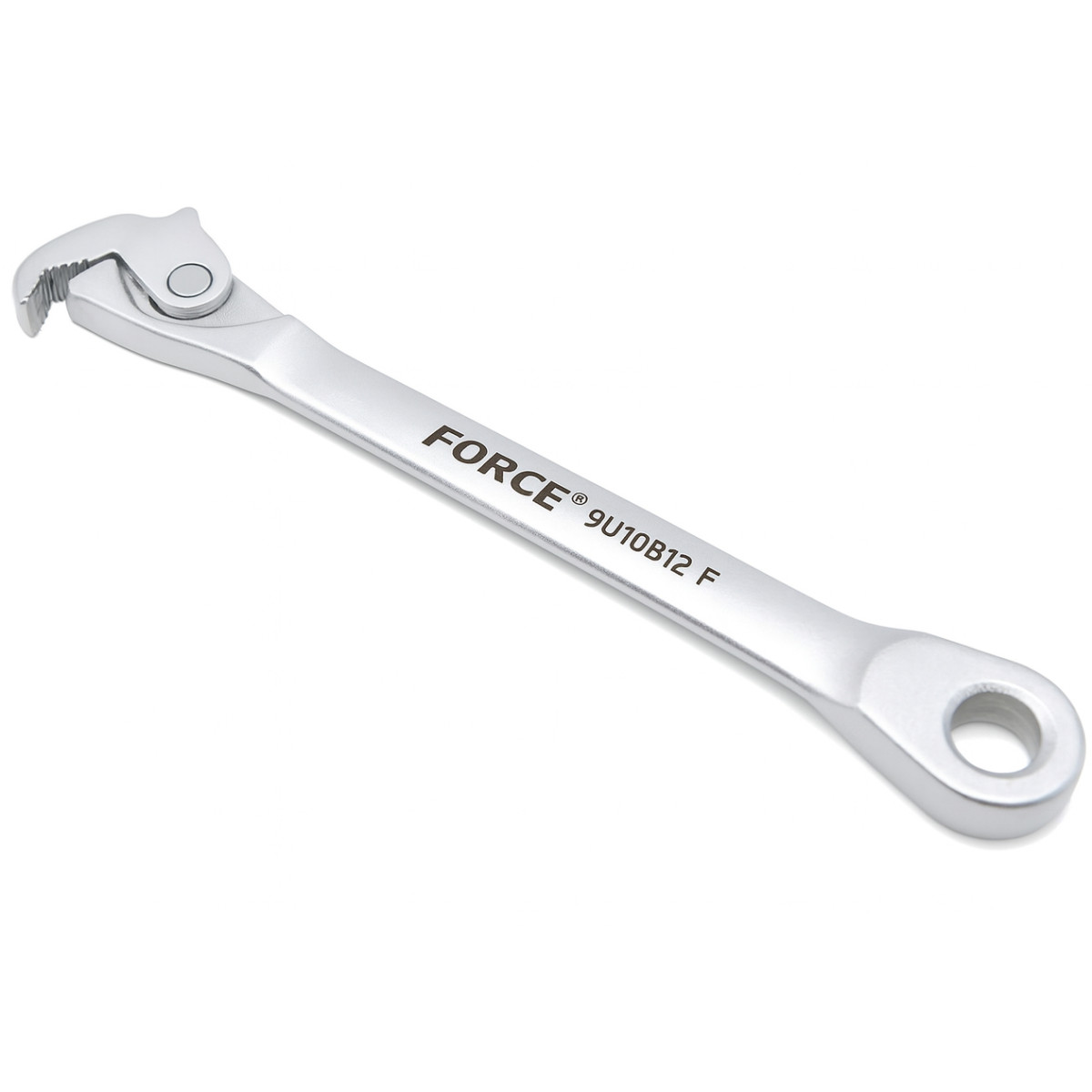 Универсальный ключ FORCE 9U10B08 F имеет особую зубчатую конструкцию захватов. С помощью плоской пружины, которая действует по принципу рычага, захваты регулируются и автоматически подстраиваются под форму и размер откручиваемой детали, болта, гайки с поврежденными гранями и т.д.. Вы можете применять ключ FORCE 9U10B08 F при работе с трубами, кранами, сломанными болтами, с гайками с сипорченной гранью и т.д. FORCE 9U10B08 F четко подойдет под любой элемент с круглыми или квадратнами гранями и обеспечит крепкий захват за счет зубчатой структуры, которая не будет проскальзывать даже на очень гладких поверхностях.
