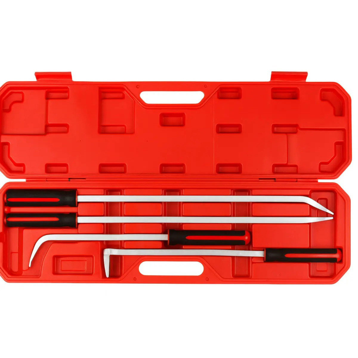Профессиональный предназначен для , а также для проверки подшипников, разборки узлов и поддевания массивных элементов. Инструменты изготовлены из хромомолибденовой стали (Cr-Mo), что обеспечивает максимальную прочность и долговечность.Благодаря увеличенным размерам и двухкомпонентным рукояткам, набор идеально подходит для работы вяжёлых условиях.Стальные торцевые колпачки на хвостовиках позволяют использовать монтировки с молотком без риска повредить рукоятку.