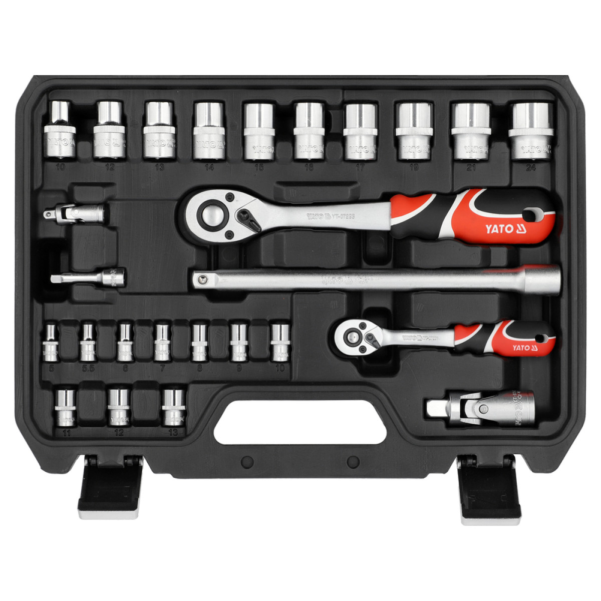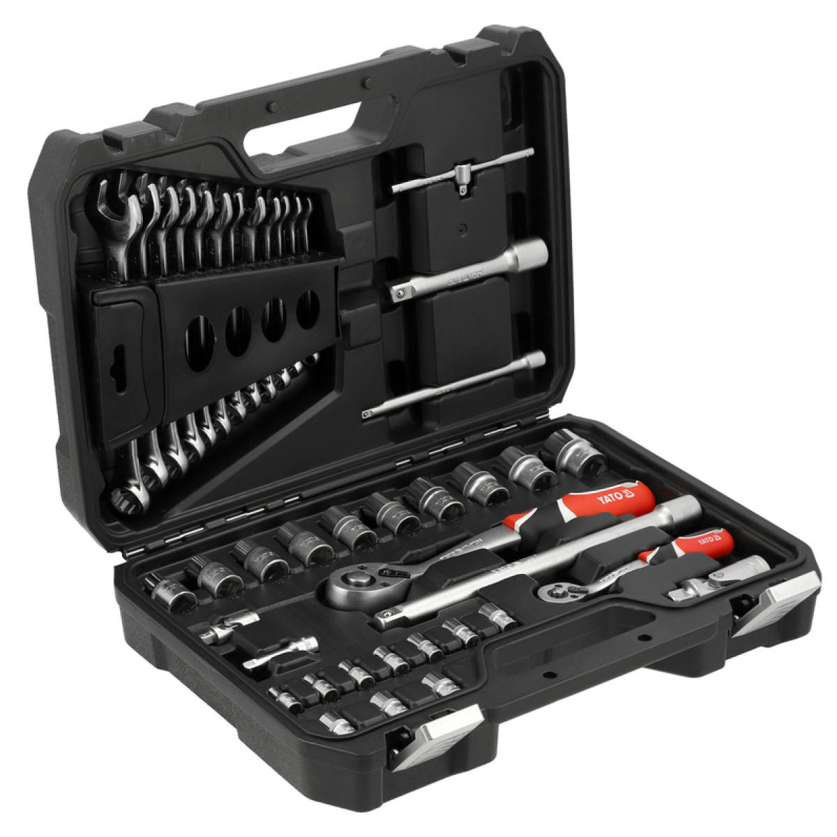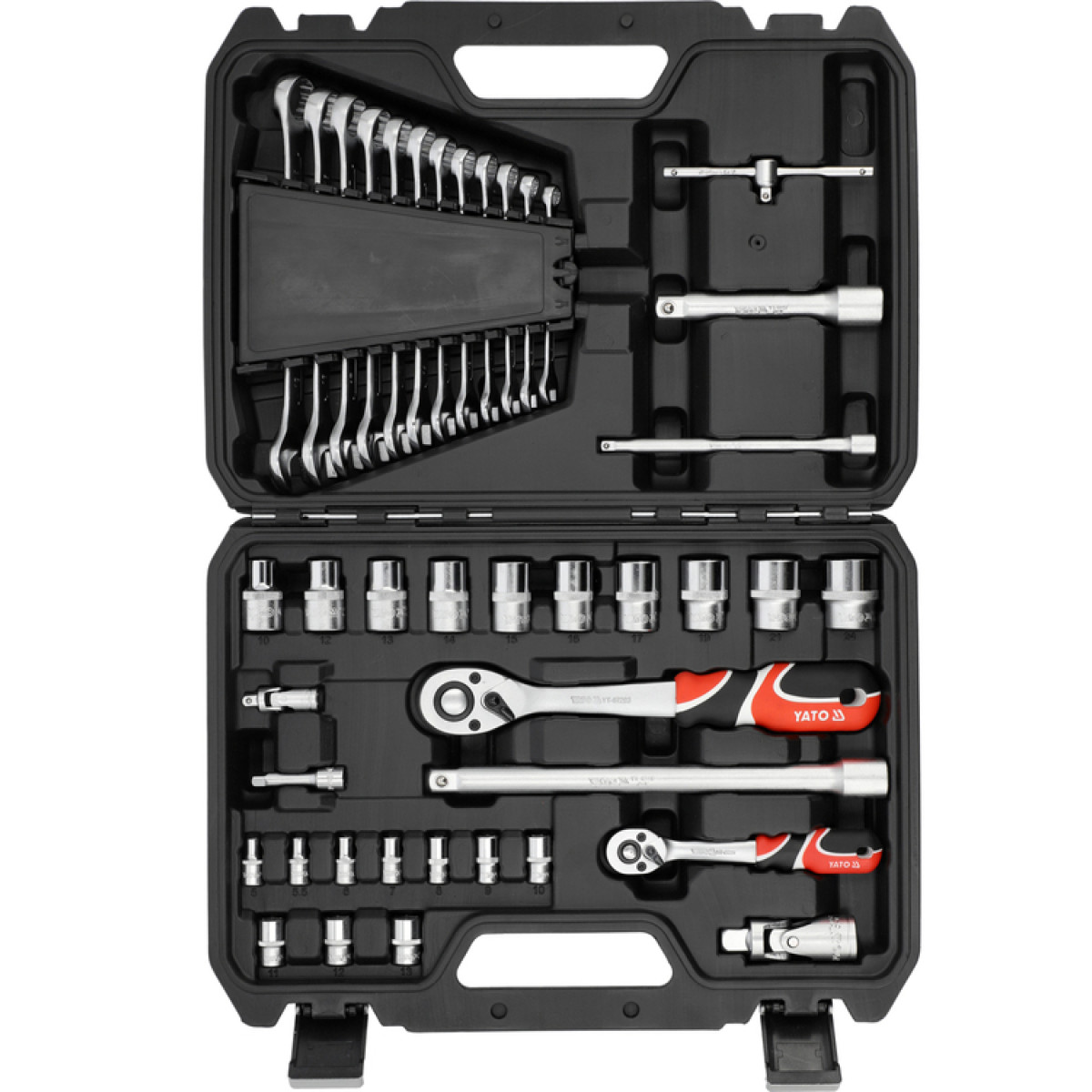 набор YATO YT-38742, инструментальный набор Yato 41 предмет, комбинированный набор 1/4 1/2, трещотка 72 зуба, CrV сталь, профессиональный инструмент YATO