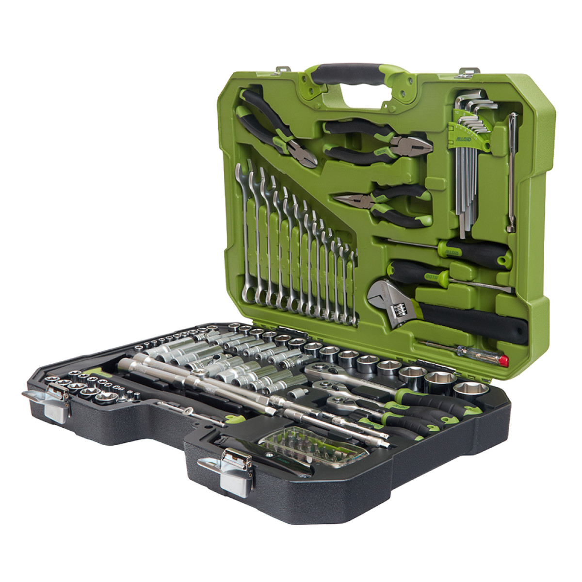 Профессиональный набор Alloid TSN-131P (131 предмет) - это полноценная мобильная мастерская для выполнения широкого спектра ремонтных и монтажных работ. Благодаря трем приводам (1/4", 3/8", 1/2") обеспечивает максимальную универсальность и оптимальное усилие при работе с различным крепежом.