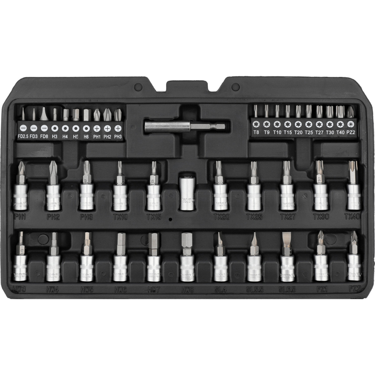 Набір головок торцевих і насадок викруткових YATO: квадрат 1/4" з прикладними інструментами 68 шт. - YT-14502