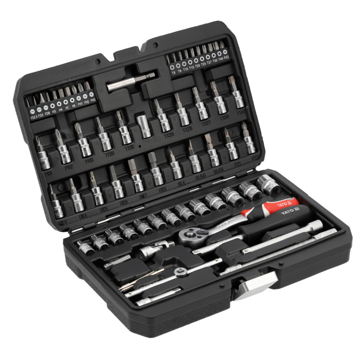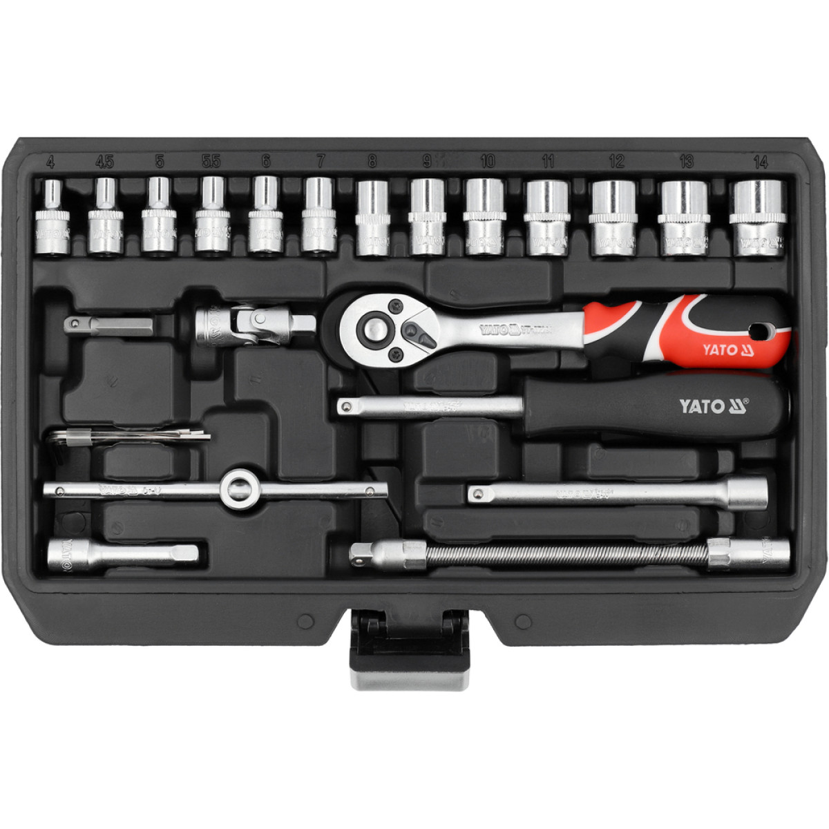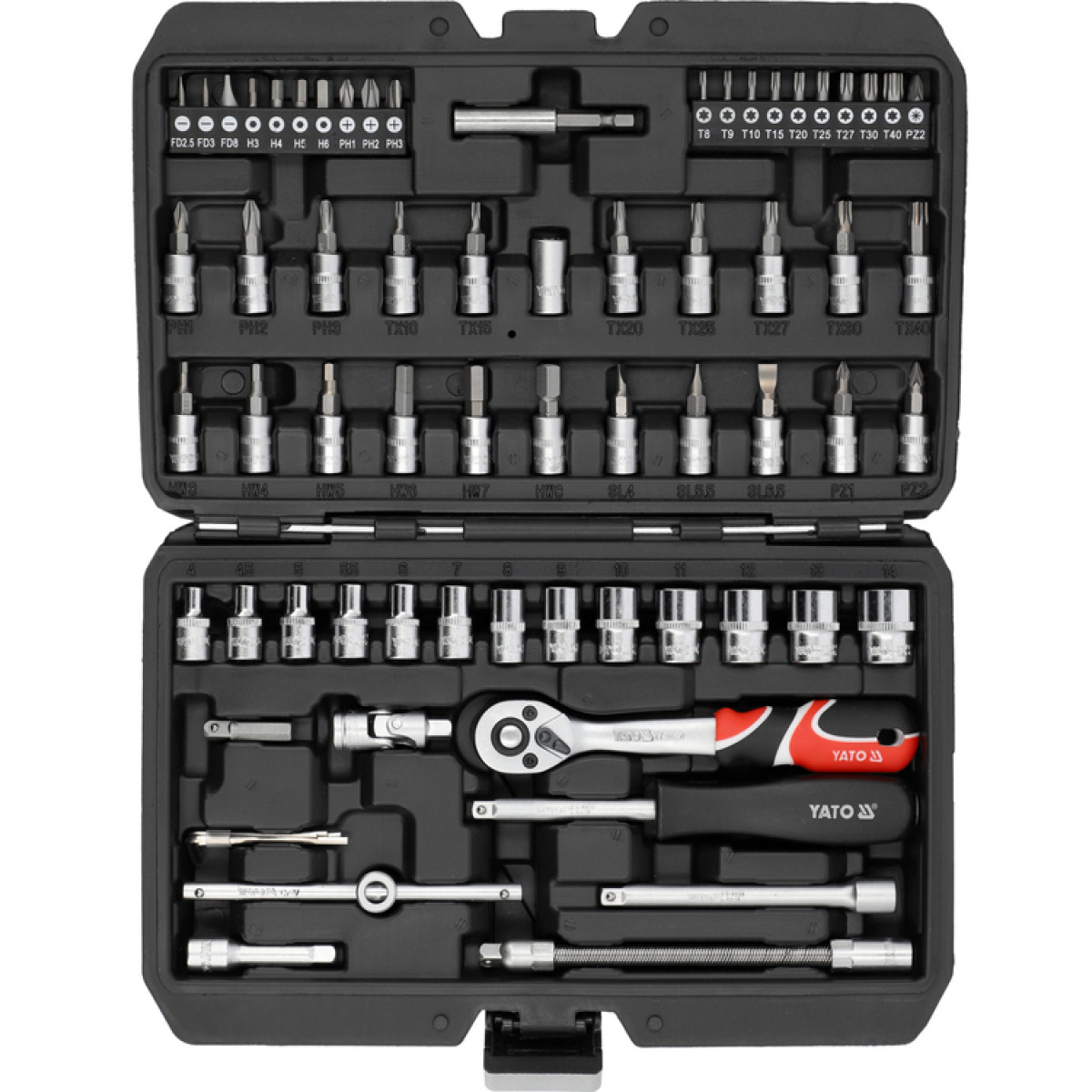 набор YATO YT-14502, инструментальный набор Yato 68 предметов, набор головок 1/4, трещотка 72 зуба, CrV сталь, профессиональный набор YATO, кейс для инструмента