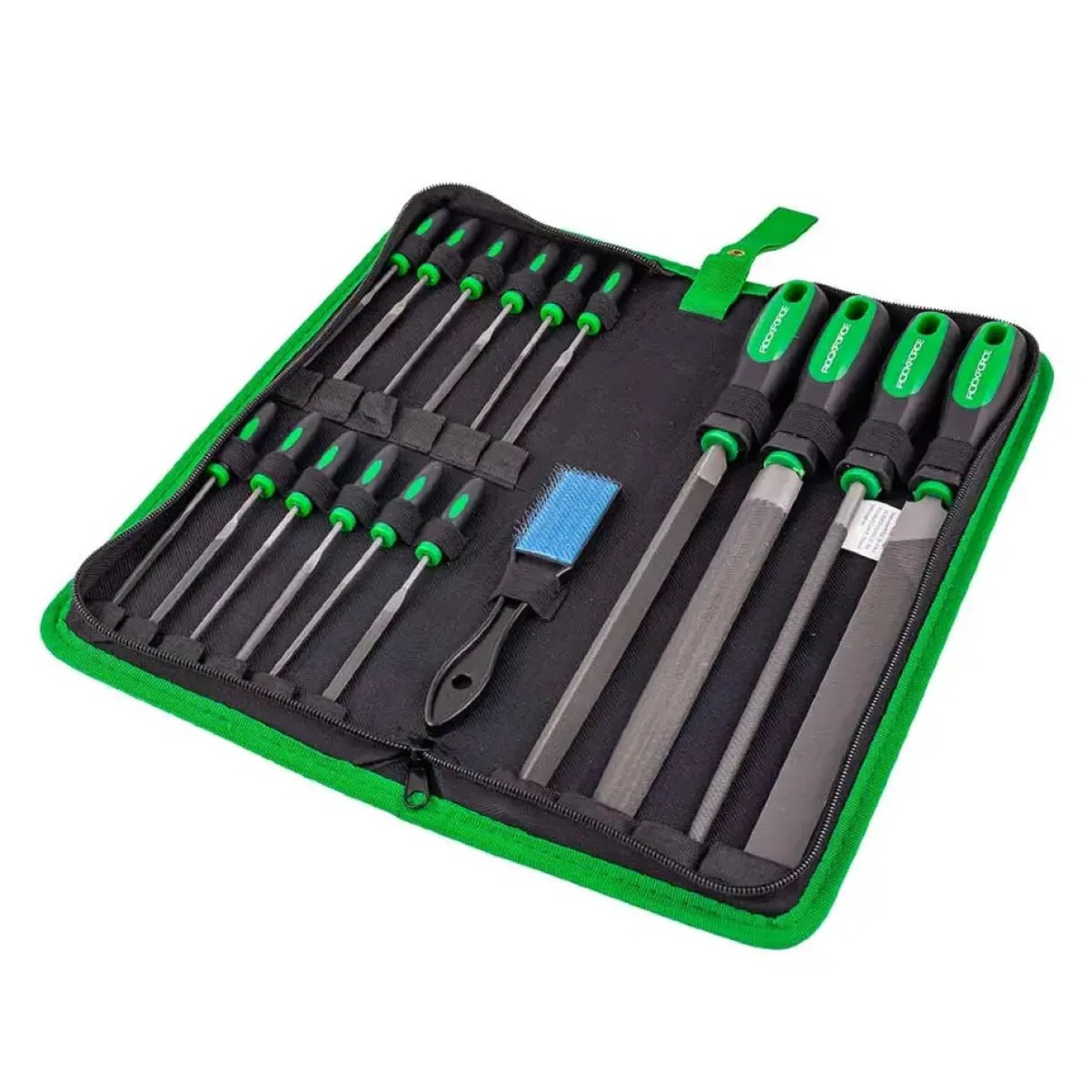 Набор разнопрофильных напильников и надфилей RF-5056W предназначен для точной обработки деталей из металла, дерева, пластика, а также для моделизма и ювелирных работ. Инструменты разных форм позволяют аккуратно обрабатывать плоскости, кромки, пазы и труднодоступные участки. Компактный чехол обеспечивает удобное хранение и транспортировку, делая набор практичным для мастерской, гаража и выездных задач.