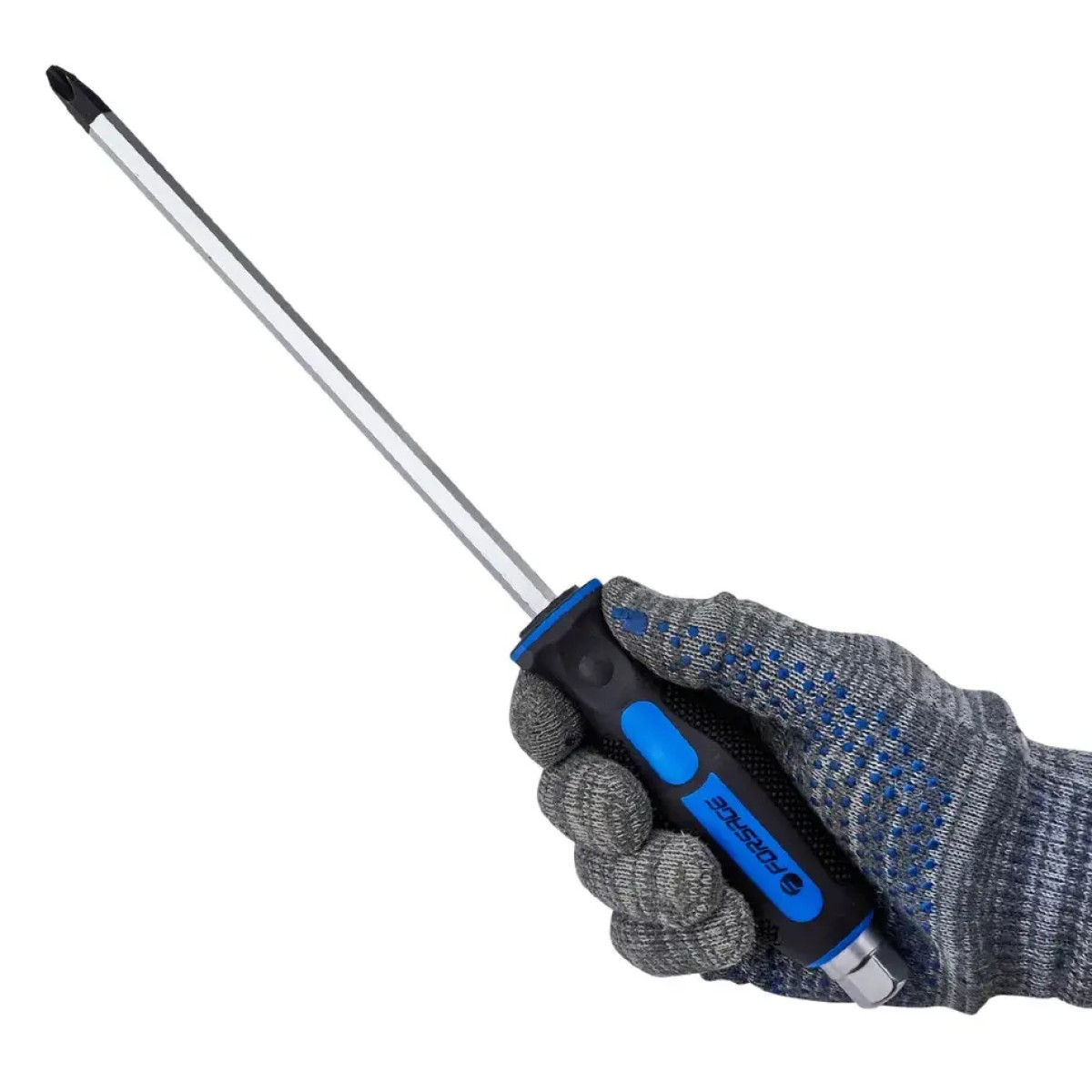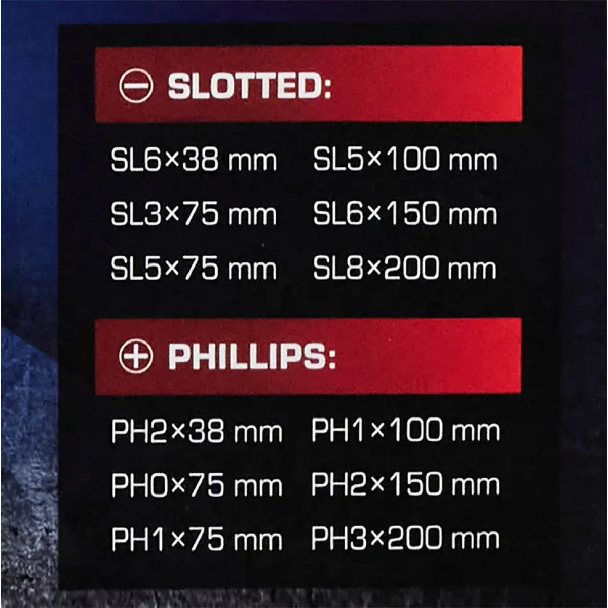 Отвертки изготовлены из прочной хромованадиевой стали Cr-V, устойчивой к износу и коррозии. Ударная конструкция позволяет передавать высокий крутящий момент, а магнитные наконечники надежно удерживают крепеж, упрощая работу в труднодоступных местах. Эргономичные двухкомпонентные рукоятки обеспечивают комфортный хват и полный контроль инструмента.