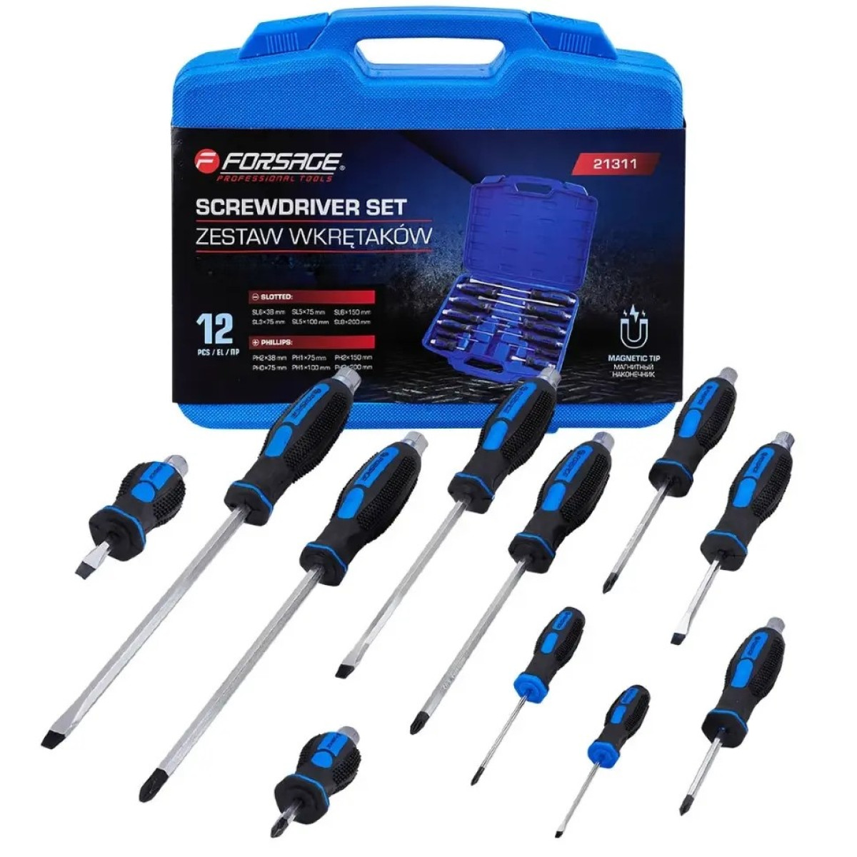 Набор силовых ударных магнитных отверток SL/PH, 12 предметов F-21311
