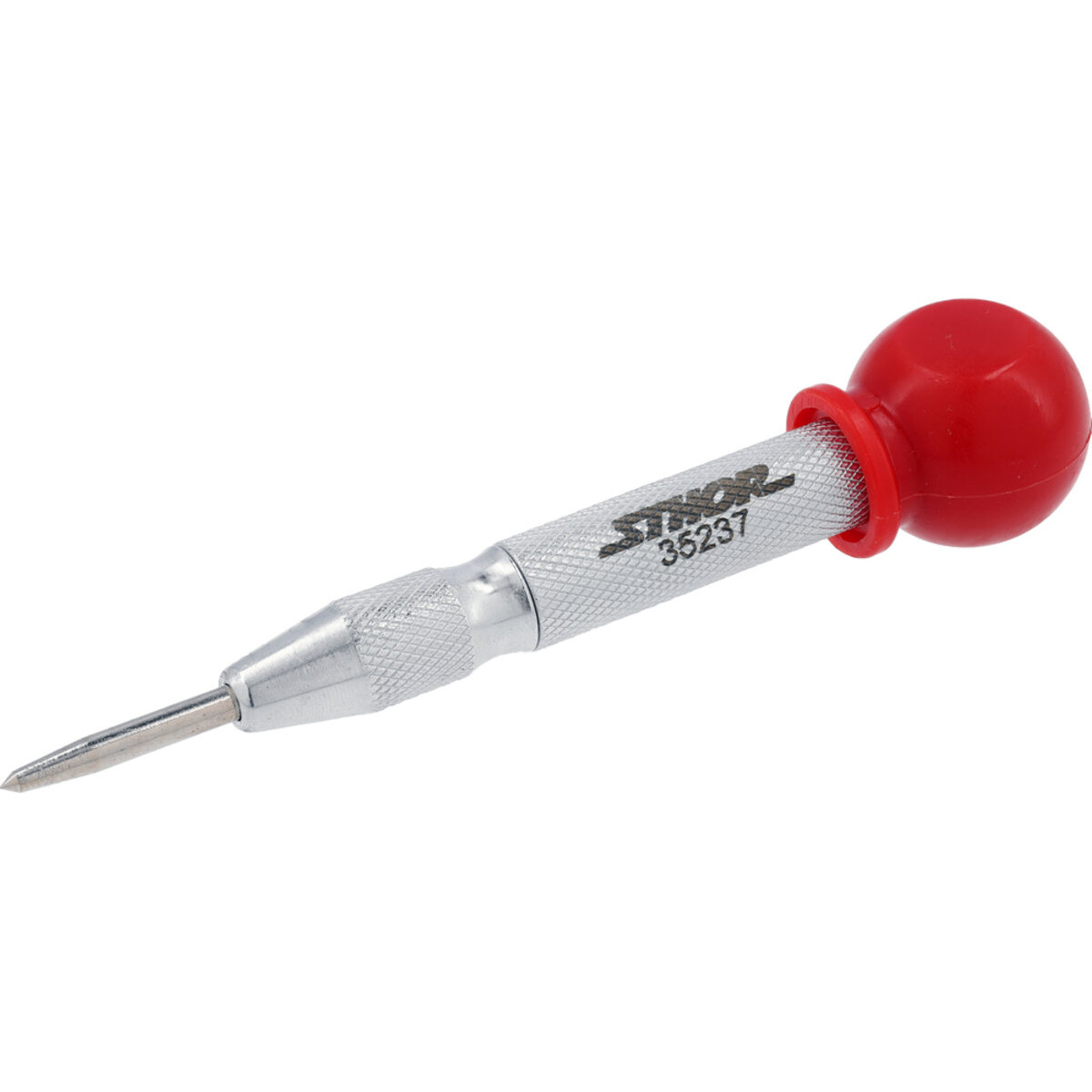 Пружинный автоматический кернер STHOR 35237 предназначен для точной разметки центровочных точек на металле, дереве и пластике перед сверлением. Встроенный пружинный механизм создаёт удар автоматически — без молотка, обеспечивая высокую точность и удобство в работе.