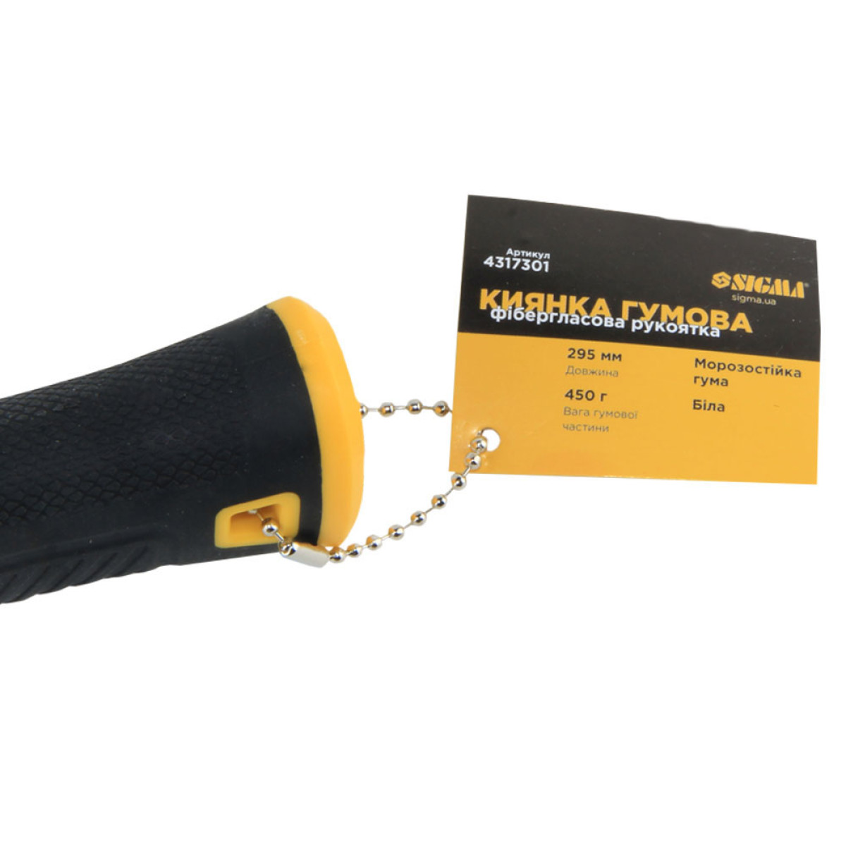 Киянка резиновая SIGMA 450 г, 4317301, белая резиновая киянка, киянка с фиберглассовой ручкой, резиновый молоток SIGMA