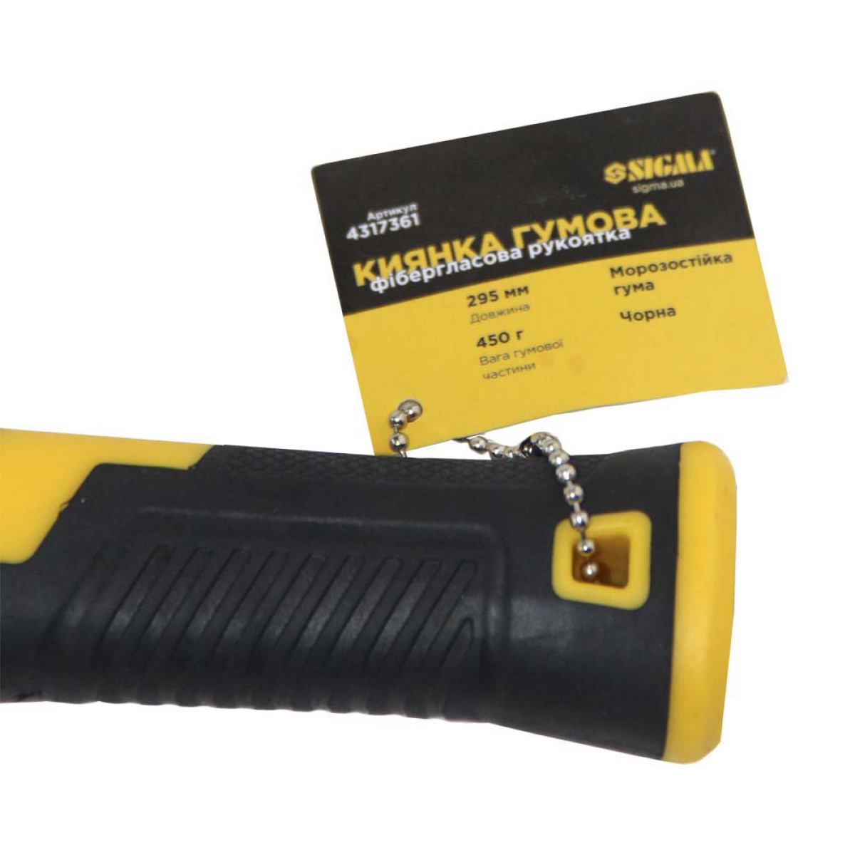 Киянка резиновая SIGMA 450 г, 4317361, киянка с фиберглассовой ручкой, черная резиновая киянка 450 г, резиновый молоток SIGMA