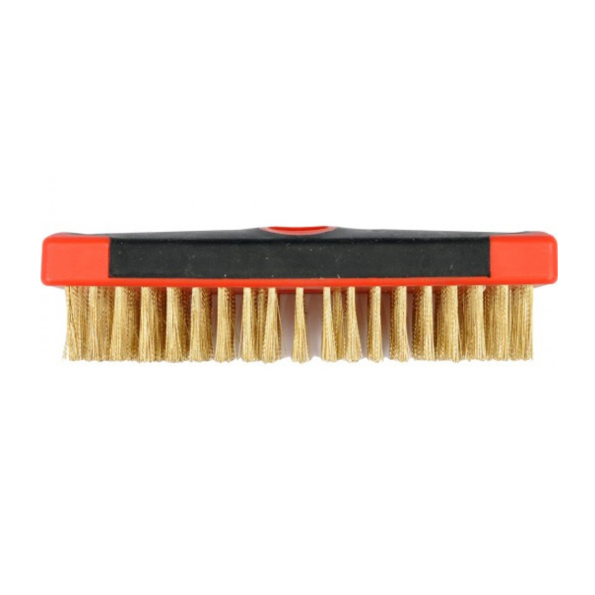 Щётка по металлу предназначена для очистки поверхностей от ржавчины, старой краски, штукатурки и других загрязнений. Рабочая часть выполнена из высококачественной латуни, обеспечивающей эффективную, но деликатную очистку без повреждения материала. Удобная ручка из ПВХ и резины гарантирует комфорт при работе, а посадочное отверстие в корпусе позволяет удобно хранить инструмент. Щётка отличается простотой использования, надёжностью и длительным сроком службы.