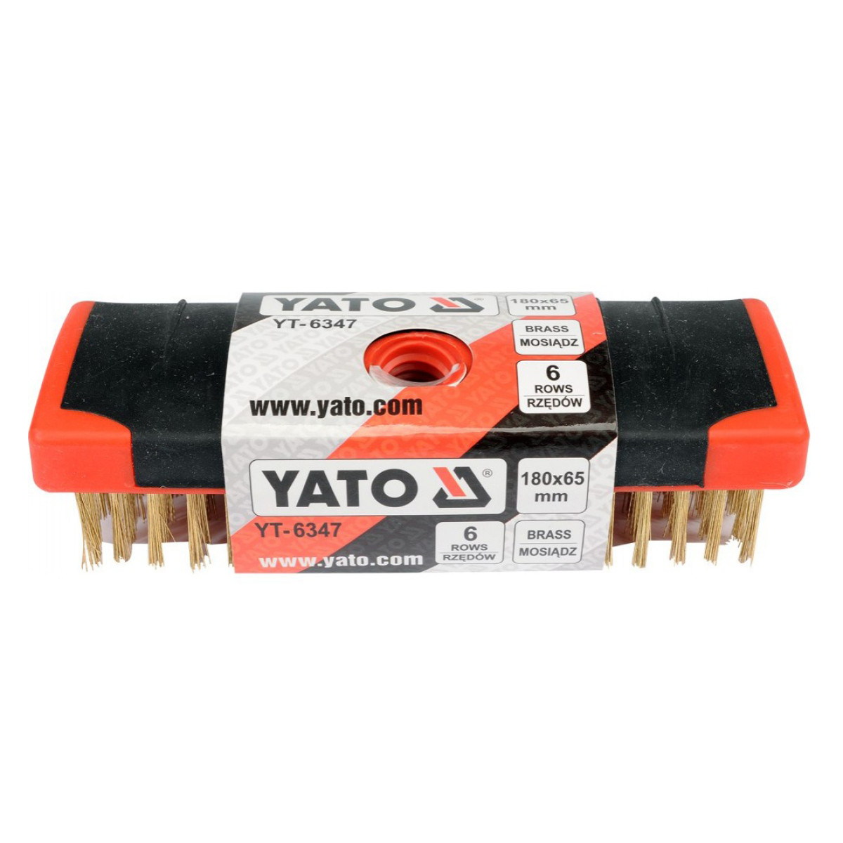Щётка по металлу с пластиковой ручкой,латунная,(180x65мм). YATO YT-6347 - YT-6347