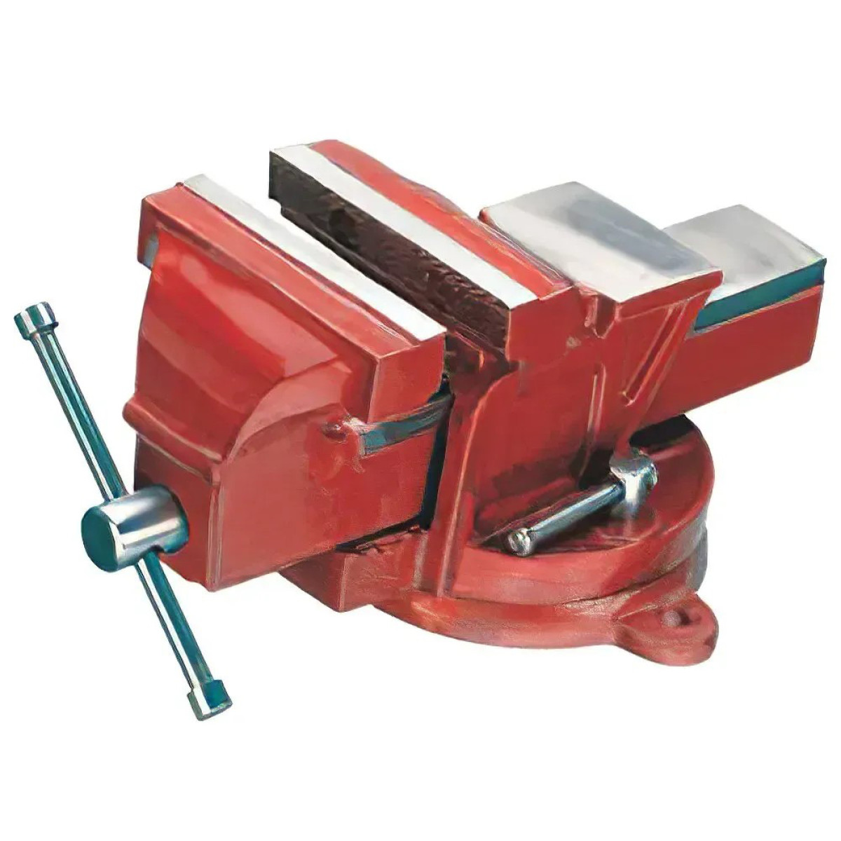 Тиски слесарные предназначены для надёжной фиксации деталей при выполнении обработочных, монтажных или ремонтных работ.Модель изготовлена из легированной стали, что обеспечивает высокую прочность, устойчивость и долговечность инструмента.Поворотное основание позволяет разворачивать заготовку на 360°, не освобождая её из губок, что значительно повышает удобство и скорость работы.Съёмные губки облегчают обслуживание тисков и позволяют заменить их при износе.