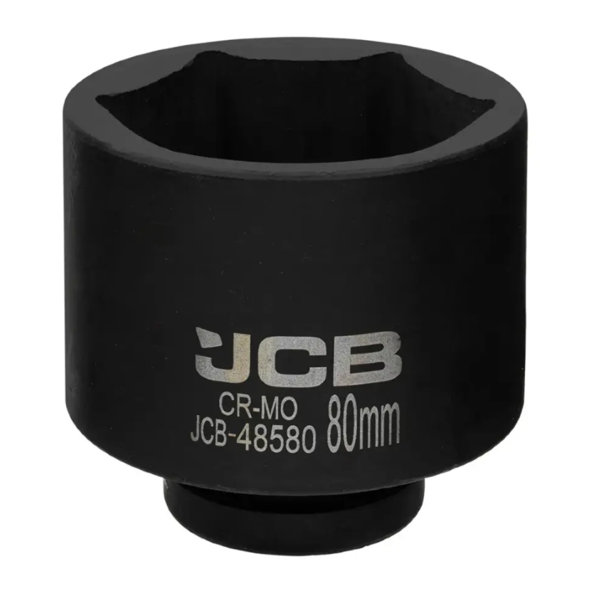 ударная головка 1 дюйм 80 мм, JCB JCB-48580, глубокая торцевая головка JCB Tools, шестигранная головка 80 мм, головка для ударного гайковёрта, глубокая головка JCB, инструмент JCB Tools, торцевая головка 1", головка для тяжёлой техники