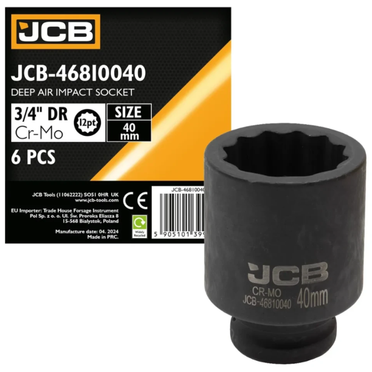 Головка торцевая ударная глубокая 3/4" 40 мм (12-гранная) JCB Tools JCB-46810040 - 59838