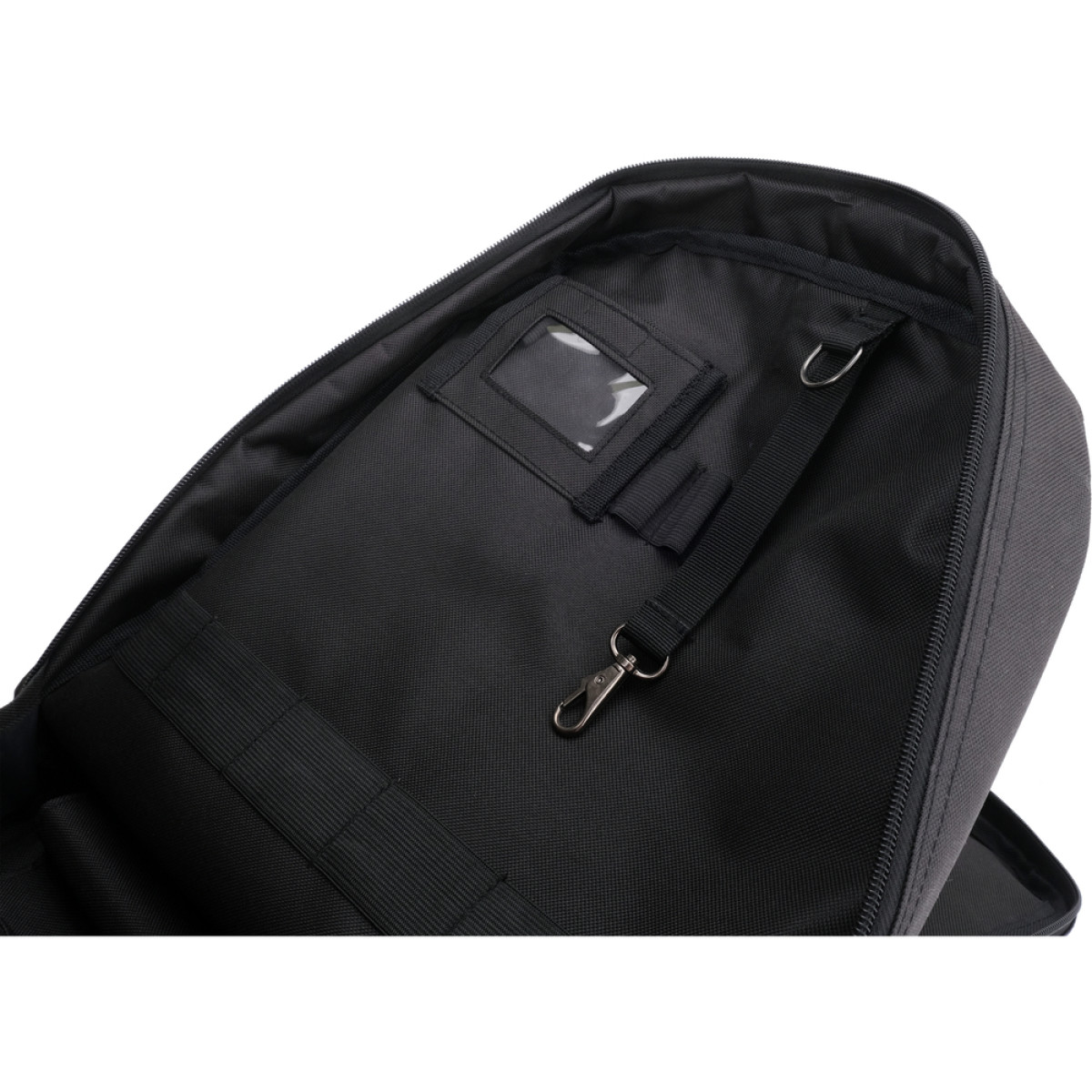 Модель оснащена и , благодаря чему рюкзак легко используется как чемодан и снижает нагрузку на спину при перемещении тяжёлого инструмента. Широкие регулируемые плечевые ремни обеспечивают комфорт при ношении, а возможность их отсоединения повышает универсальность. Внутренние перегородки, карманы и держатели помогают поддерживать порядок и защищают инструмент во время транспортировки.