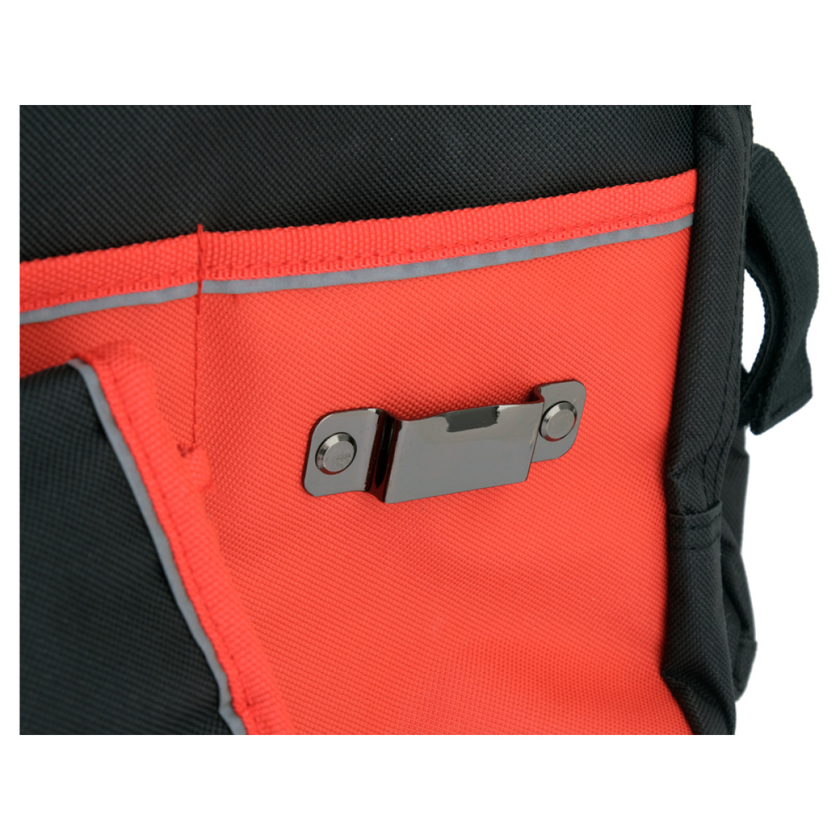 Объём позволяет разместить ручной инструмент, компактные электроинструменты и монтажные принадлежности. Корпус выполнен из прочного технического полиэстера , устойчивого к истиранию, влаге и ежедневным нагрузкам. Усиленное защищает содержимое от воды и механических повреждений.