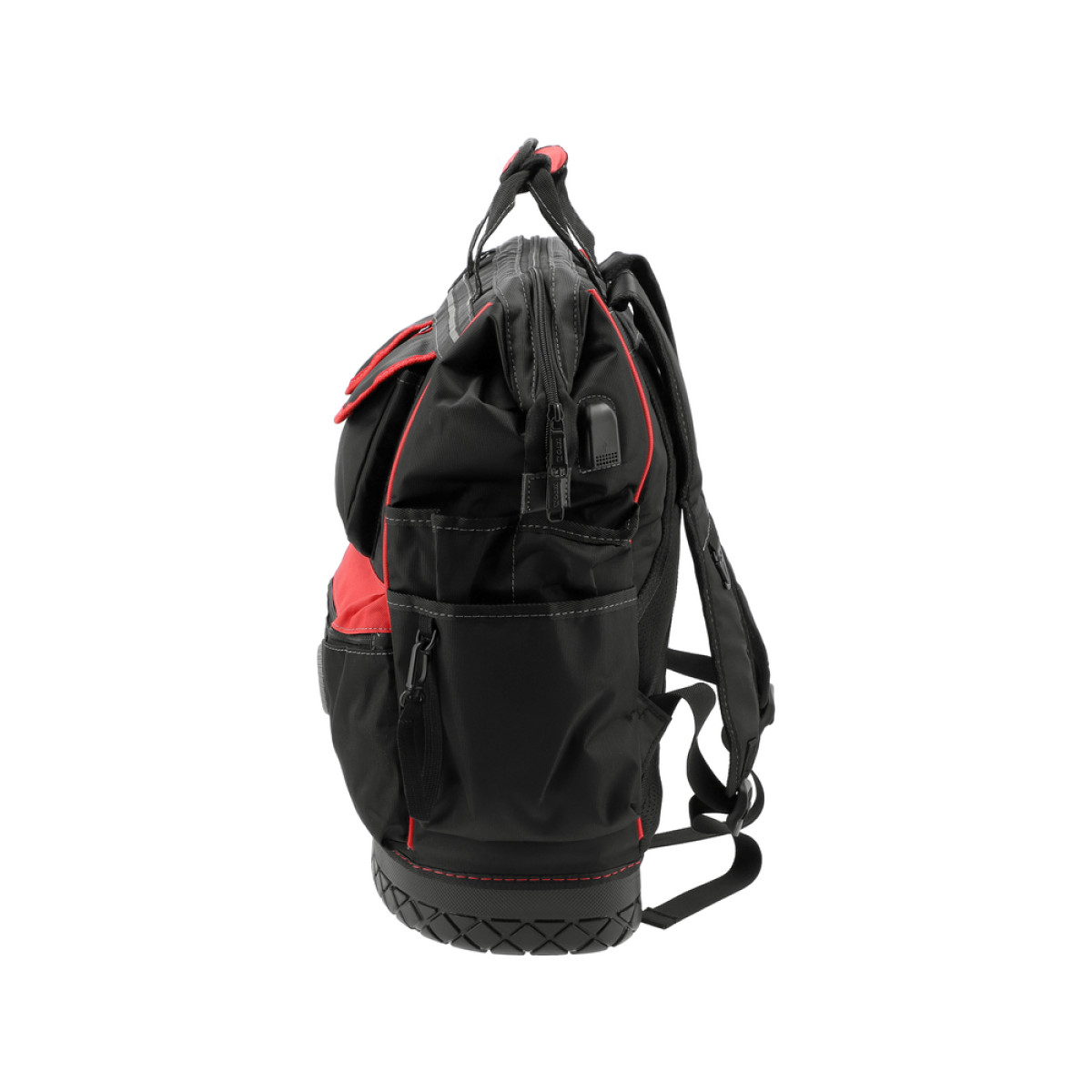Рюкзак оснащен функциональными внутренними и внешними карманами для удобной организации инструмента. Встроенный USB-порт позволяет подключить внешний аккумулятор и заряжать мобильные устройства.