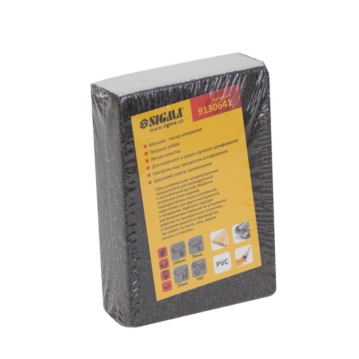 Губка шліфувальна чотиристороння 100×70×25мм P60 SIGMA (9130641) - 9130641