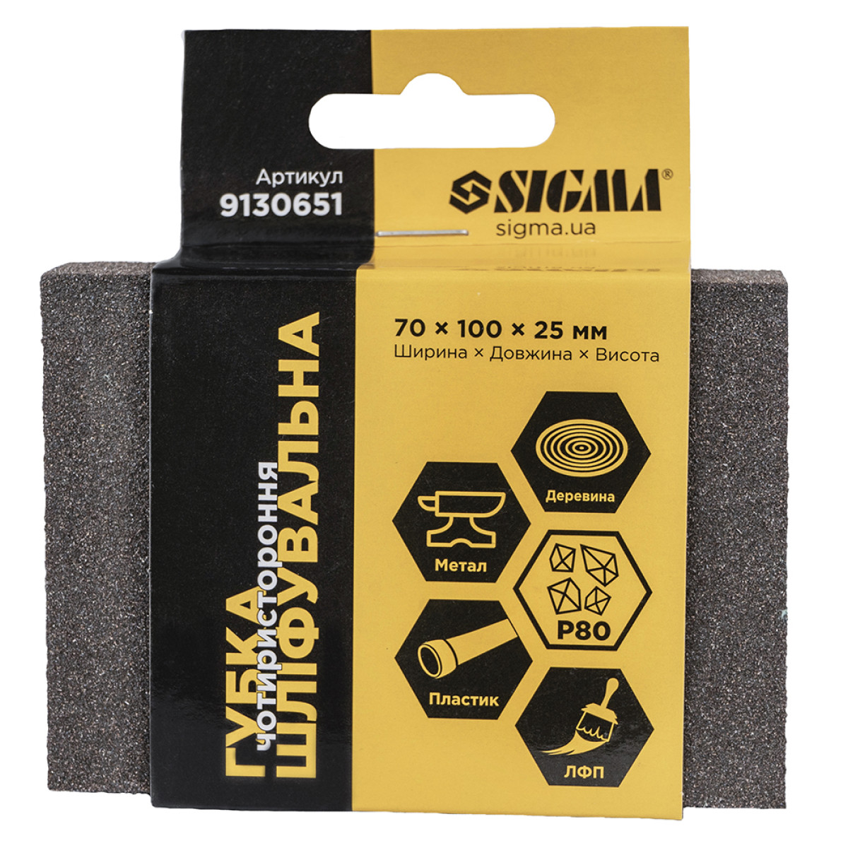 Губка шлифовальная четырехсторонняя 100×70×25 мм P80 SIGMA (9130651) - 9130651