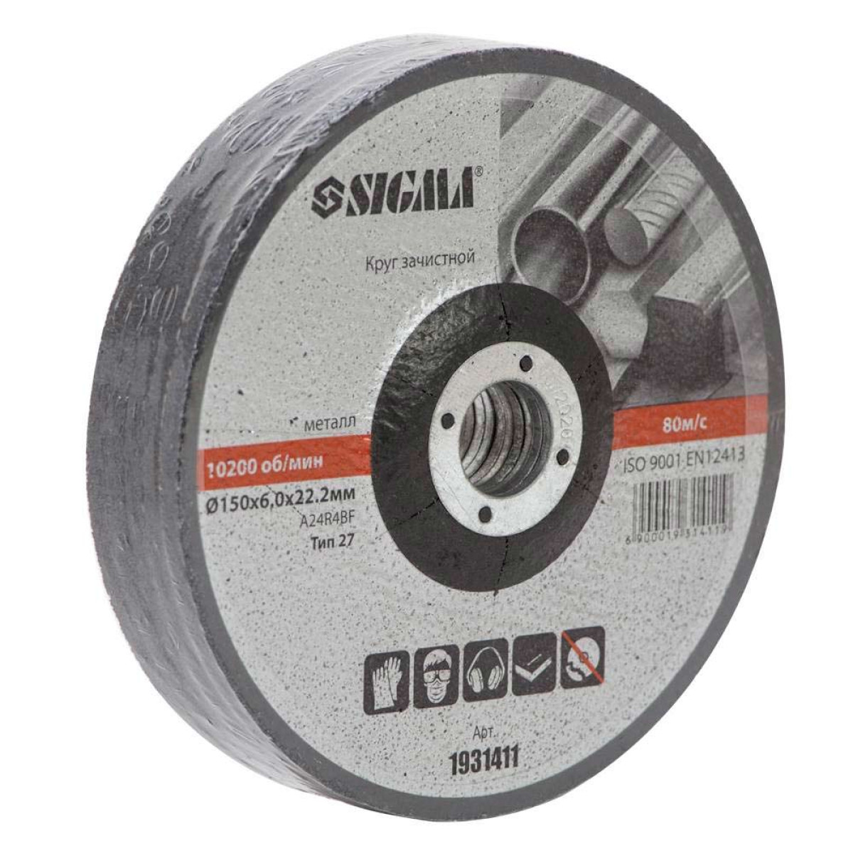 Круг зачистной по металлу Ø150×6.0×22.2 мм, 10200 об/мин SIGMA 1931411 - 1931411