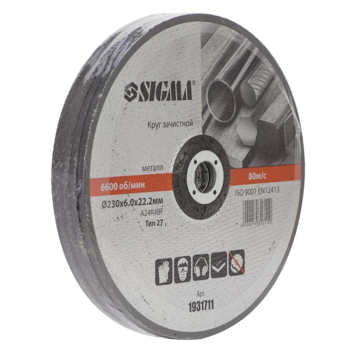 Круг зачистной по металлу Ø230×6.0×22.2 мм, 6600 об/мин SIGMA 193171 - 1931711