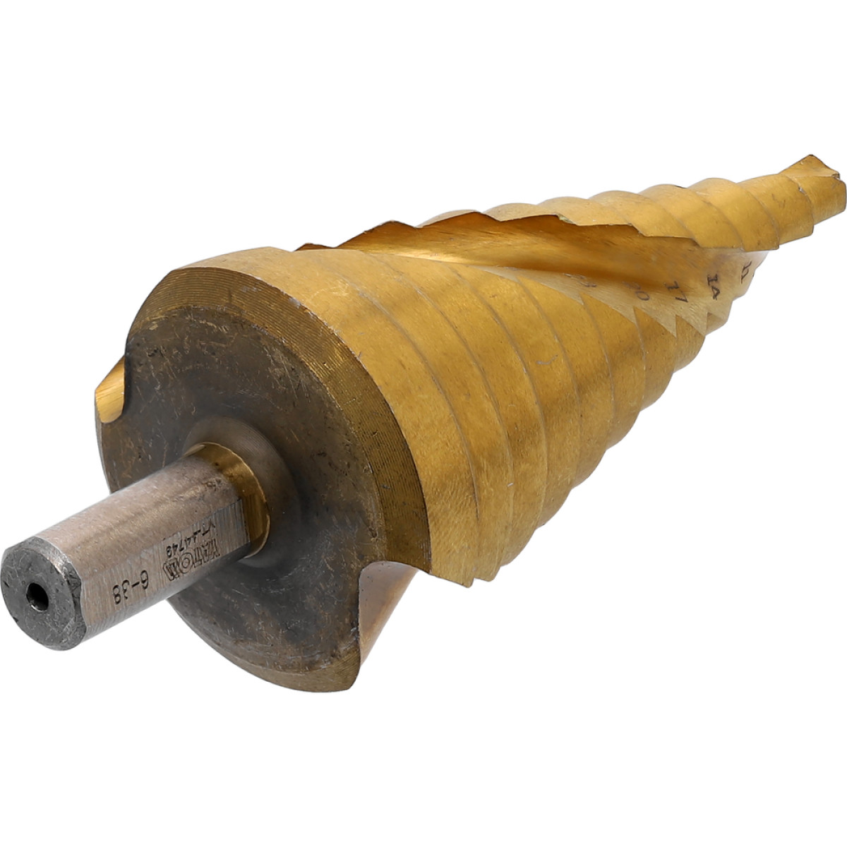 сверло ступенчатое YATO 6-38 мм, YT-44749, коническое сверло по металлу, сверло HSS 4341 TiN, ступенчатое сверло 12 ступеней