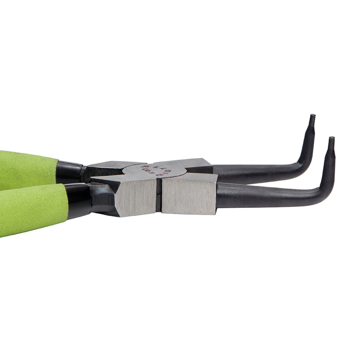 - для внутренних стопорных колец, которые сжимаются для снятия или установки во внутренние пазы. Позволяют работать под углом в глубоких посадочных местах.
