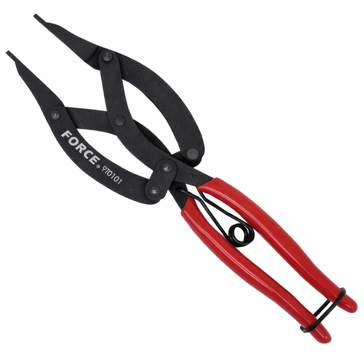 FORCE 9T0101 - профессиональный инструмент для снятия и установки глухих стопорных колец при ремонте трансмиссии и других узлов автомобиля. Усиленное соединение рычагов обеспечивает точность и надежность работы.