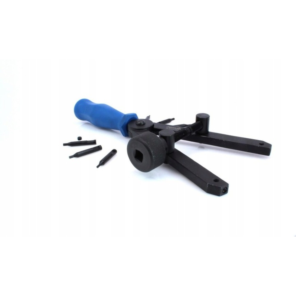 Винтовой механизм с маховиком позволяет плавно контролировать усилия разжатия или сжатия, а также может использоваться с гаечным ключом 3/8" для большего момента. Идеально подходит для профессионального использования на СТО, а также для домашнего мастера, ценящего качество и надежность.
