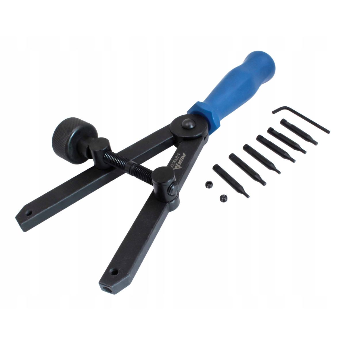 Универсальный винтовой съемник ASTA A-RT31SF предназначен для монтажа и демонтажа внутренних и наружных стопорных колец диаметром от 3 до 96 мм. Оснащен тремя парами сменных рабочих наконечников, что позволяет адаптировать инструмент под разные типы и размеры стопоров. Надежная конструкция с винтовой регулировкой обеспечивает точное и удобное позиционирование инструмента во время работы.