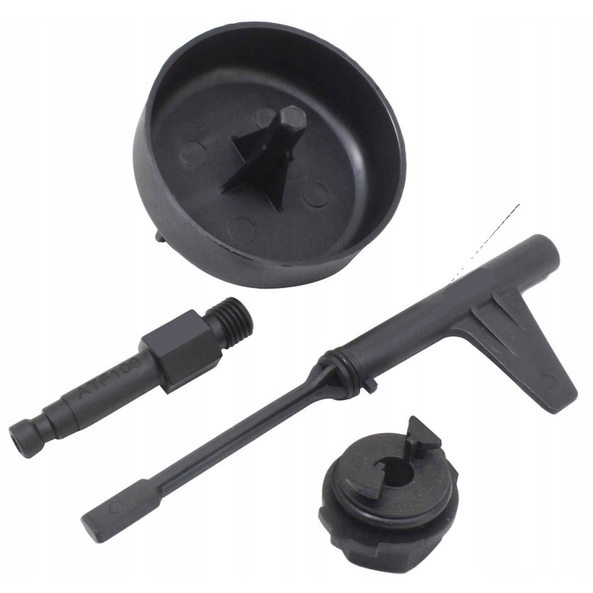 Набор состоит из трёх специальных адаптеров, обеспечивающих точное и безопасное подключение к трансмиссии без риска утечек и загрязнения. Инструмент широко применяется на СТО и при профессиональном обслуживании автомобилей Mercedes-Benz.