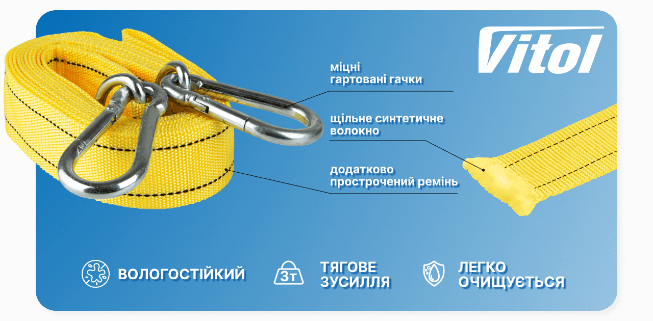Троси буксирувальні VITOL (ТР-202-3-2) виготовлені з морозостійкого авіаційного капрону;
