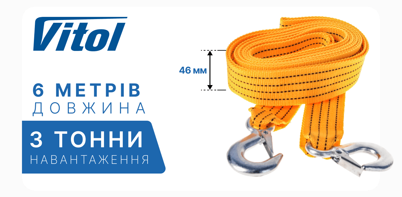 Трос буксирувальний з гаками 3тонни, стрічка 46мм, довжина 6м (TP-207-3-1) - TP-207-3-1