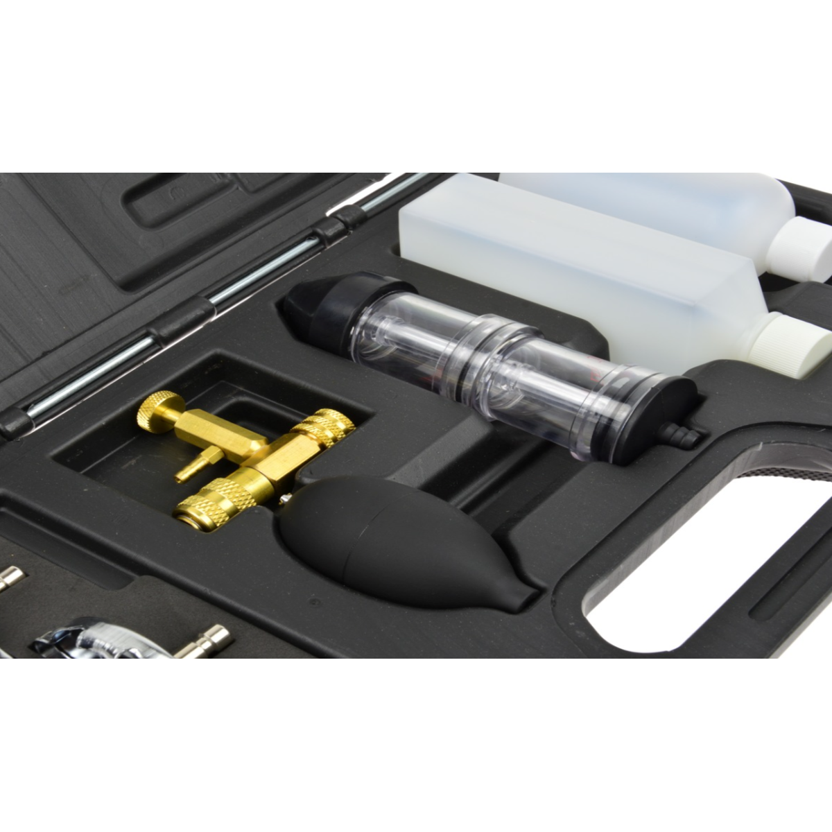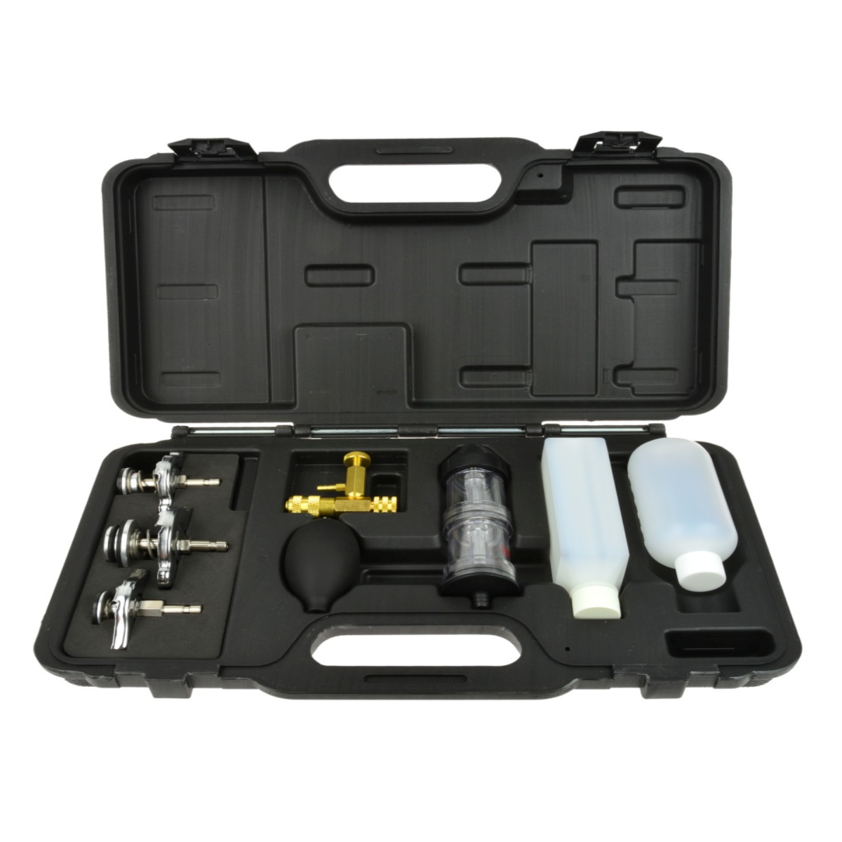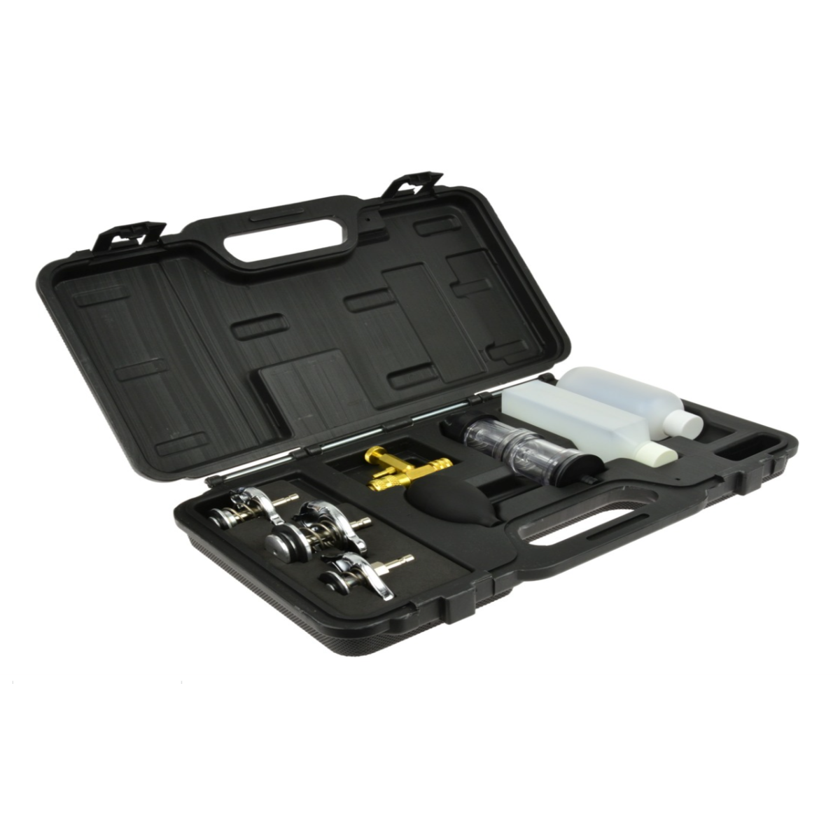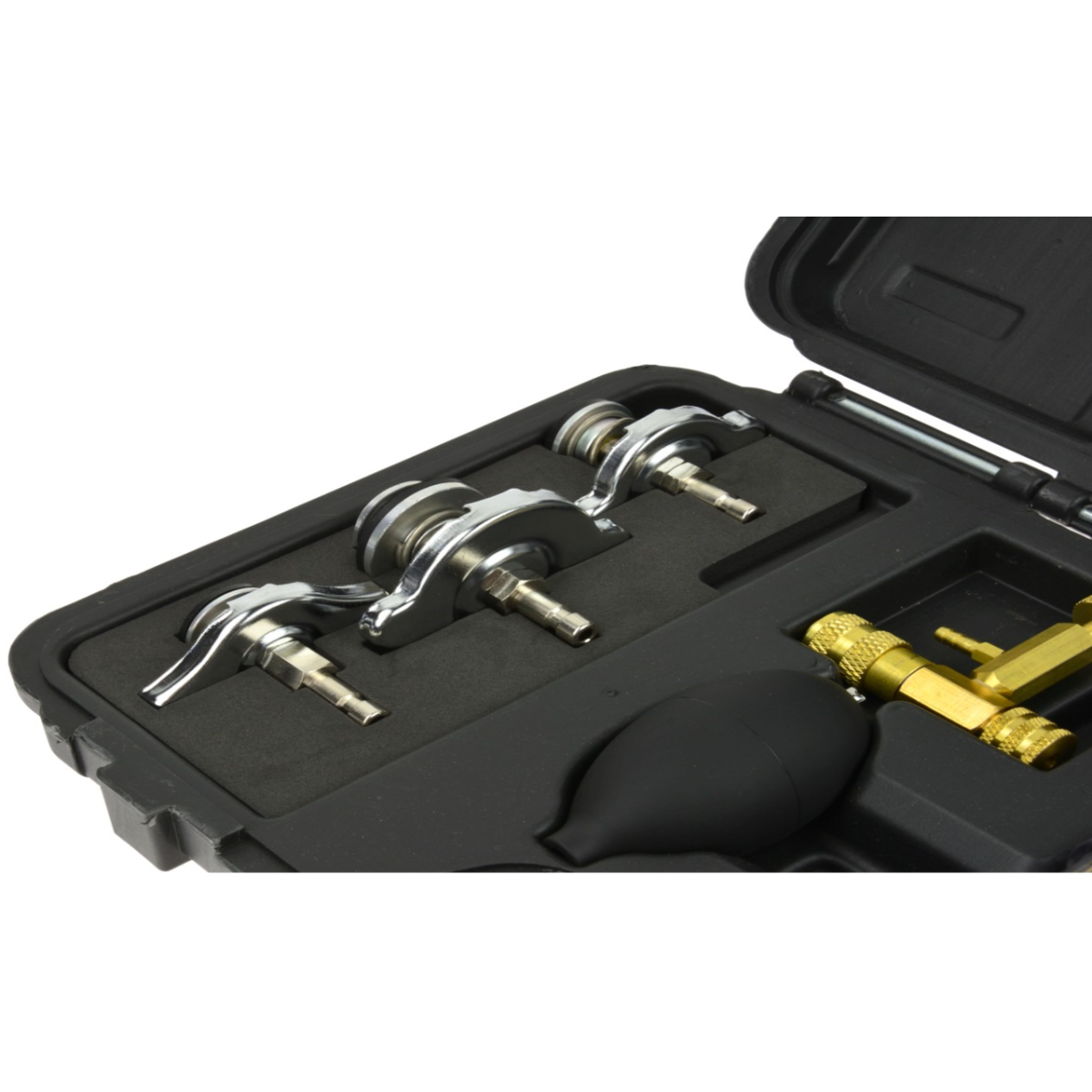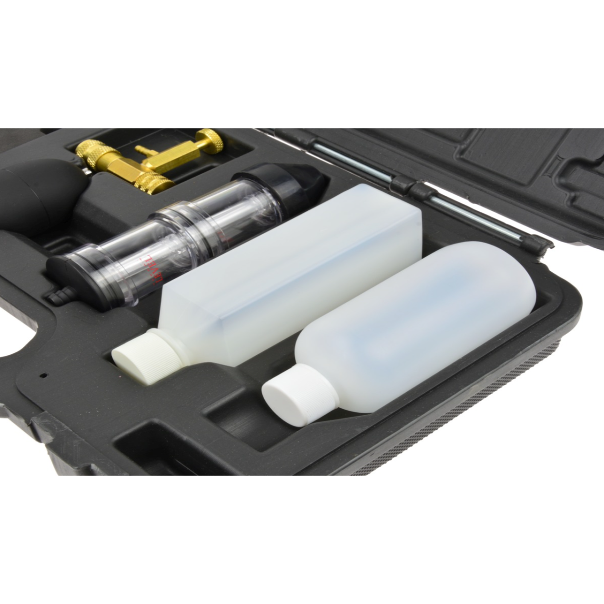 Тестер витоку прокладки головки CO2 призначений для швидкої діагностики несправностей прокладки головки блоку циліндрів. Прилад дозволяє визначити наявність відпрацьованих газів у системі охолодження, зокрема CO2, що свідчить про пошкодження прокладки або головки блоку. Принцип роботи базується на вимірюванні вмісту CO2 у системі охолодження двигуна. Дає можливість швидко та точно виявити несправність без розбирання двигуна. Підходить для широкого спектра автомобілів завдяки універсальним адаптерам.