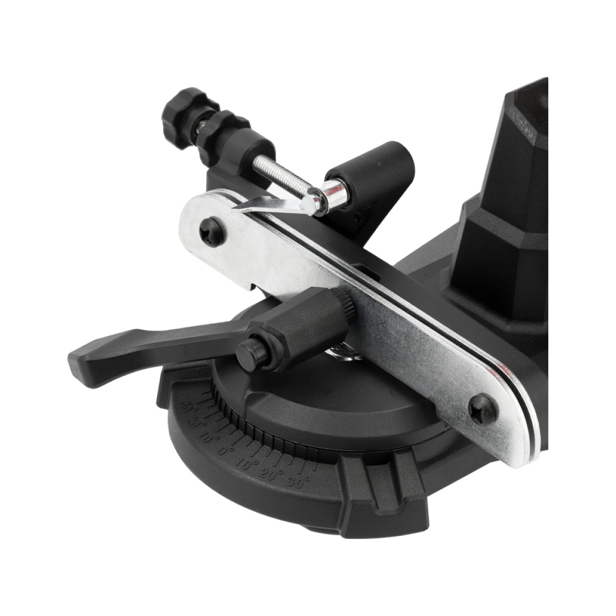 Регулювання кута заточування в діапазоні 0-35° дозволяє точно налаштувати інструмент під конкретний тип ланцюга та спосіб різання. Металева напрямна забезпечує стабільність та довговічність конструкції, а ергономічний корпус вагою 1.7 кг гарантує комфорт під час роботи. Індикатор заряду акумулятора дозволяє контролювати рівень енергії під час використання.