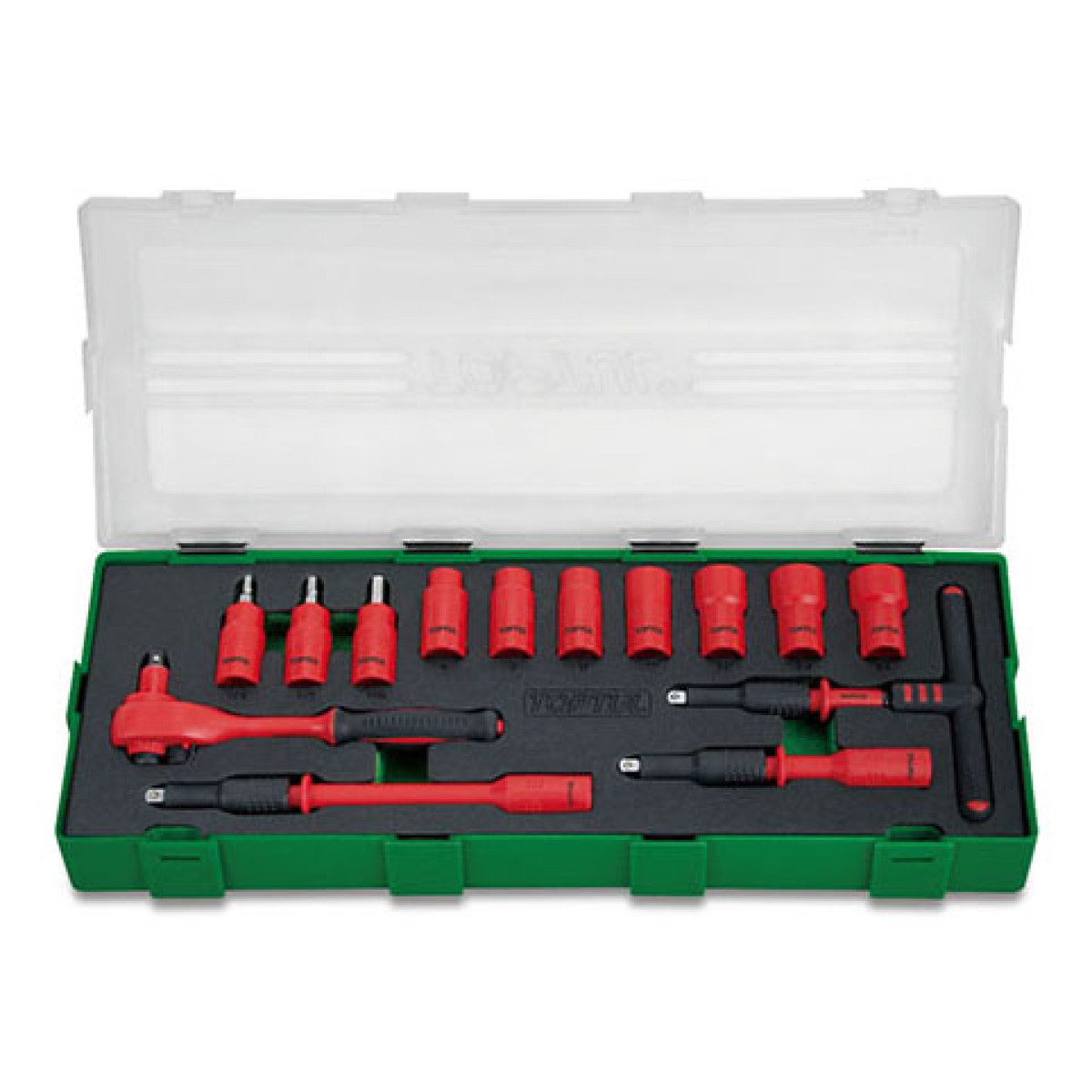 Набір інструменту електроізольованого VDE 1/4" 14 од. (6-гран.) TOPTUL GZA1447 це компактний комплект у пластиковому кейсі з приєднувальним квадратом 1/4" для безпечних електромонтажних робіт. Набір містить 14 од. оснастки та інструменту 6-гранні торцеві головки 6 / 7 / 8 / 10 / 12 / 13 / 14 мм біти HEX, запресовані в головку 4 / 5 / 6 мм Т-подібний вороток тріскачку на 45 зубців та два подовжувачі 100 мм і 150 мм. Електроізоляція VDE підвищує рівень захисту під час виконання робіт поблизу електричних ланцюгів.