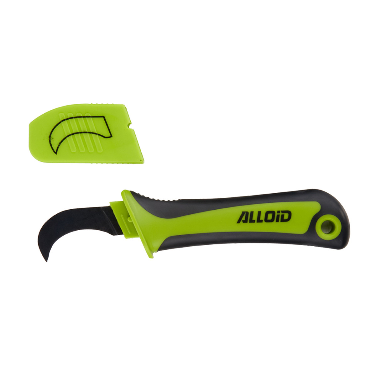 Ніж для зняття ізоляції Alloid WSK-04444 призначений для швидкого та акуратного видалення ізоляції з проводів і кабелів без пошкодження провідника. Спеціальне гачкоподібне лезо дозволяє точно надрізати ізоляцію та знімати її контрольовано, а ергономічна рукоятка з прогумованими вставками забезпечує зручний і надійний хват під час тривалої роботи. У комплекті є захисний чохол для леза, що підвищує безпеку зберігання та транспортування інструмента.