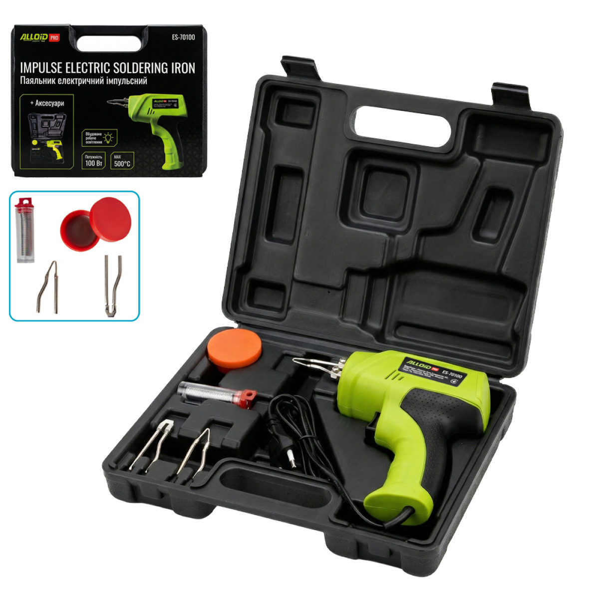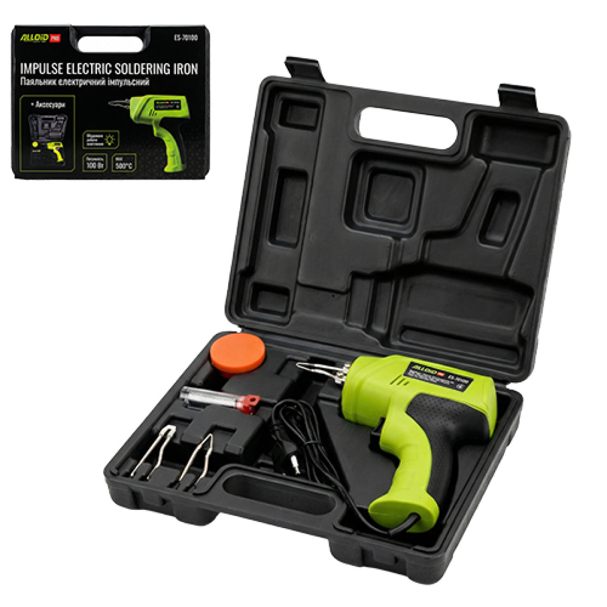 Паяльник електричний імпульсний з аксесуарами, 100 Вт Alloid Pro ES-70100