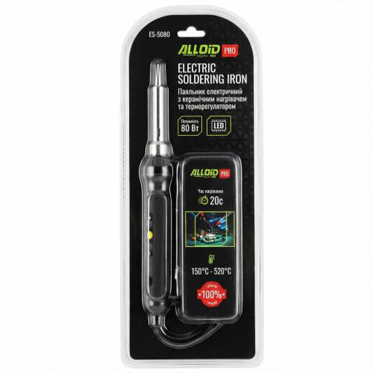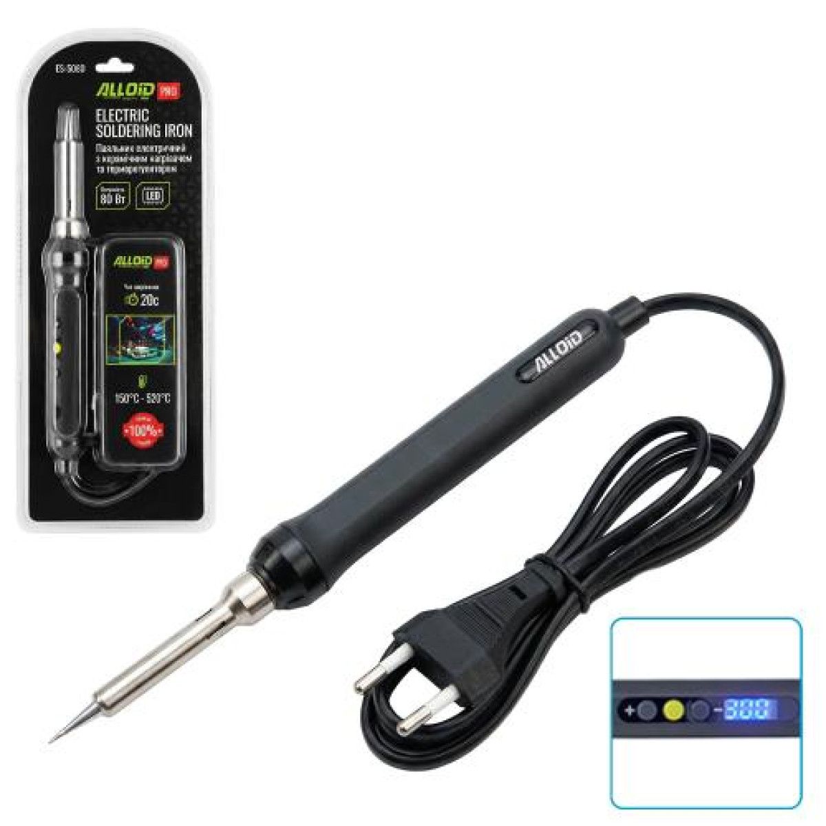 Паяльник електричний з керамічним нагрівачем, терморегулятором і LCD-дисплеєм 80 Вт Alloid Pro ES-5080 - ES-5080