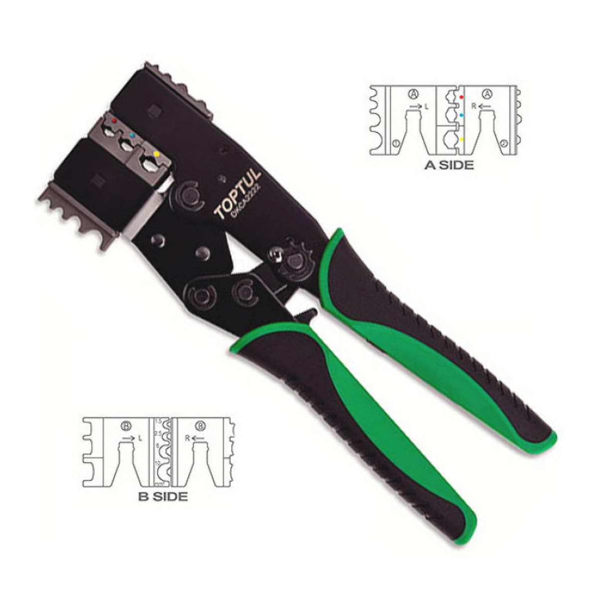 Кліщі для обтискання клем та зняття ізоляції тріскачкові 2 в 1.TOPTUL DKCA2222 - DKCA2222