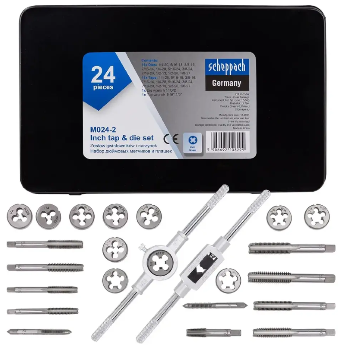 Набір дюймових мітчиків і плашок 24 предмети,в металевому кейсі. Scheppach SCH-M024-2 - 64901