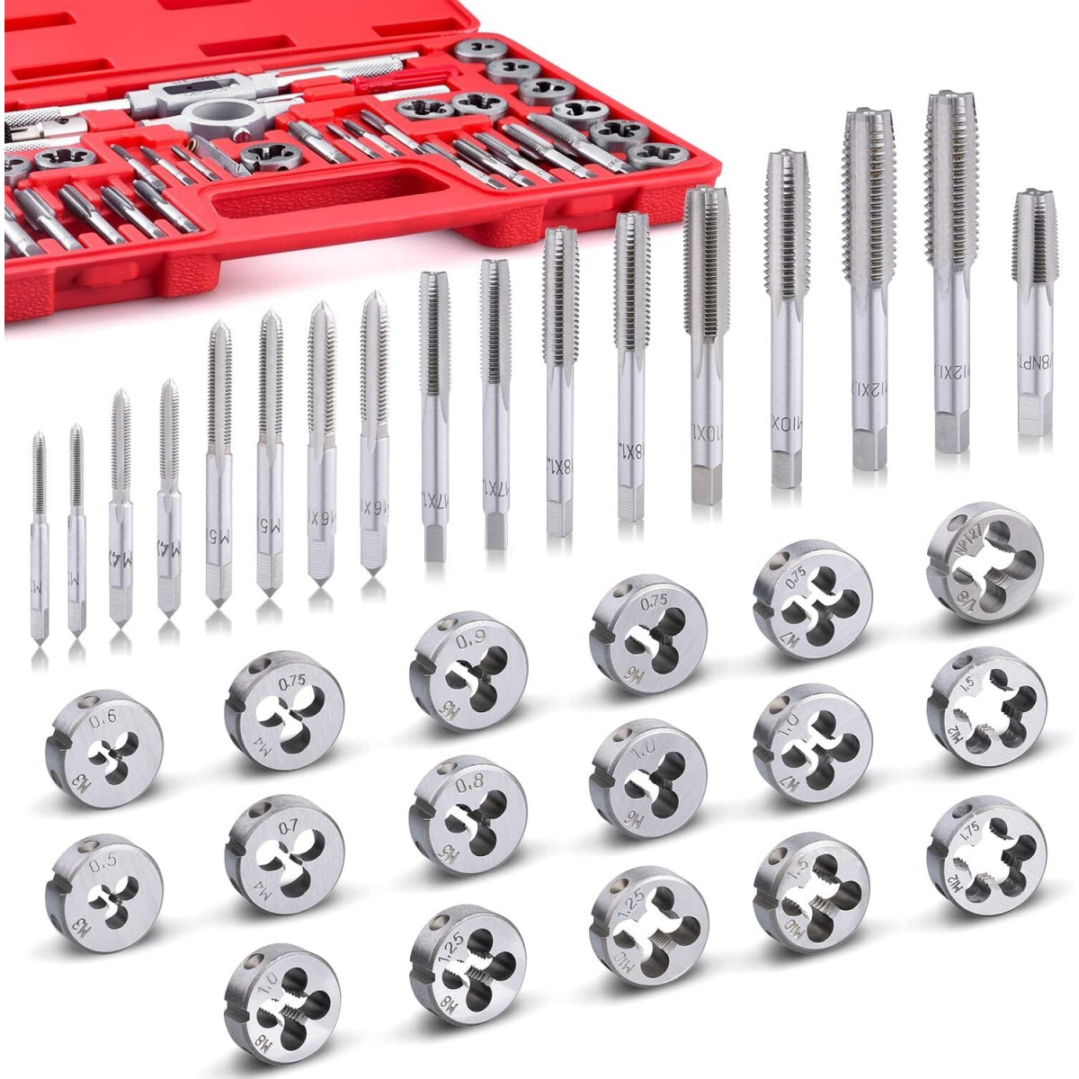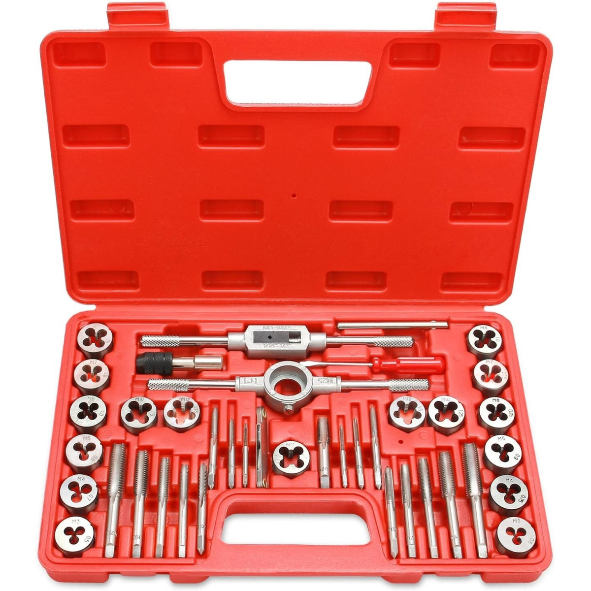 набір мітчиків і плашок REWOLT, набір для нарізання різьби, метричний набір різьбонарізного інструменту, набір REWOLT T1136, інструмент для відновлення різьби, мітчики і плашки в кейсі