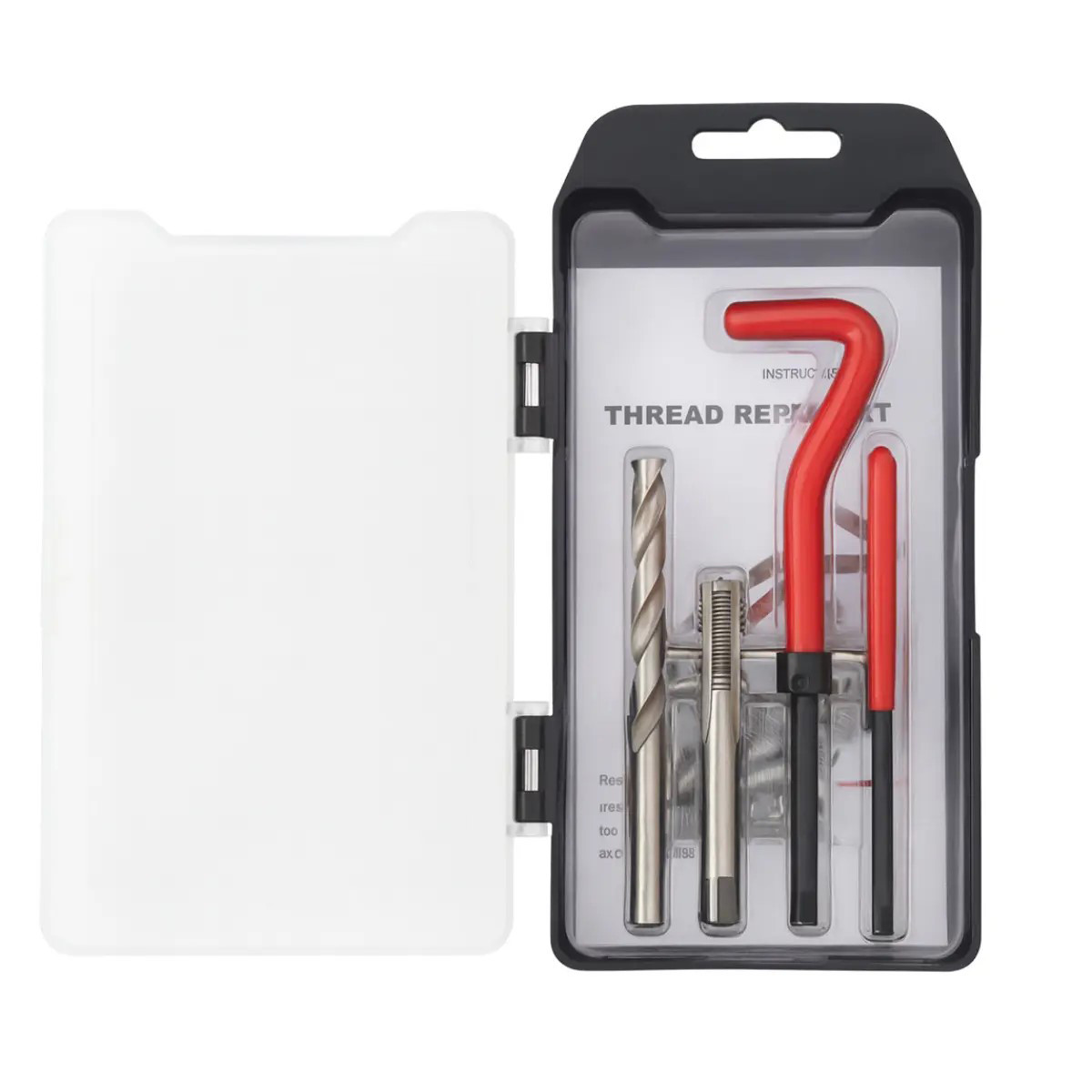 Професійний набір для ремонту різьби призначений для відновлення пошкоджених різьбових з’єднань типу у деталях зі сталі, алюмінію та інших металів. Дозволяє швидко, точно та надійно відновити пошкоджену різьбу без заміни всієї деталі. Завдяки , набір забезпечує довговічність і стійкість до навантажень. Ідеально підходить для , та . Усі елементи зручно розміщені в для транспортування та зберігання.