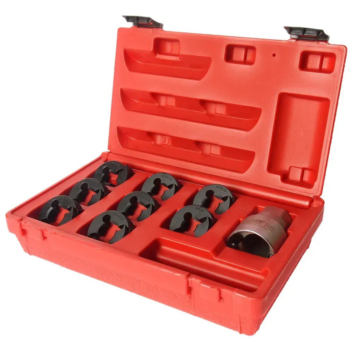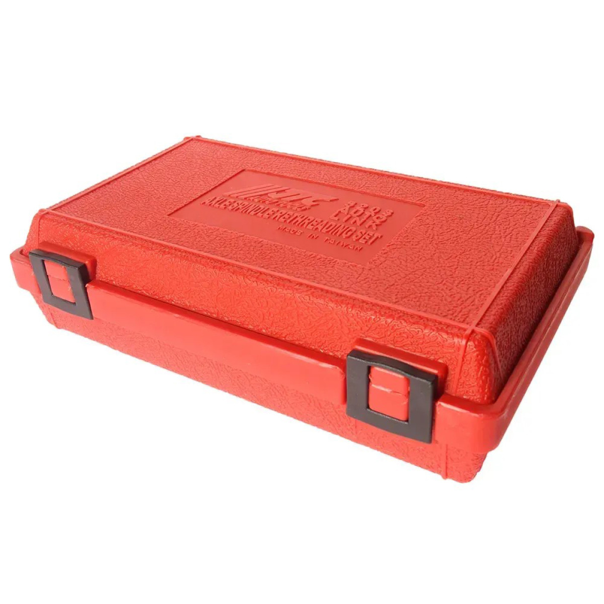 Набір призначений для очищення та відновлення різьблення на осях ШРУСа.Містить головки з різьбленням .Використовується з торцевою головкою або гайковим ключем .Інструмент виготовлений із високоякісної легованої сталі, що забезпечує міцність і довговічність.