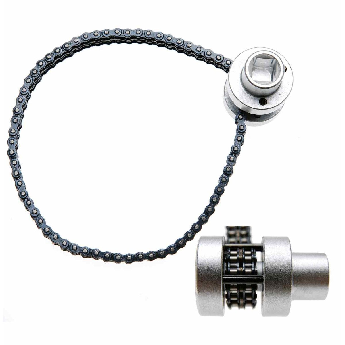 Ланцюговий ключ для масляних фільтрів призначений для діаметром . Подвійний ланцюг типу «дуплекс» забезпечує , тому інструмент витримує під час відкручування сильно затягнутих фільтрів. Ключ працює з приводом , зручний у використанні на СТО та в гаражі, а корпус зі гарантує .